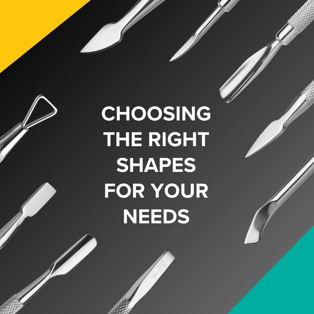 - With pencil, spatula, scoop, chisel, wedge, and spoon ends available, Rui Smiths pushers scrape off glue and remove dirt to uncover the natural beauty of toenail and fingernail surfaces.