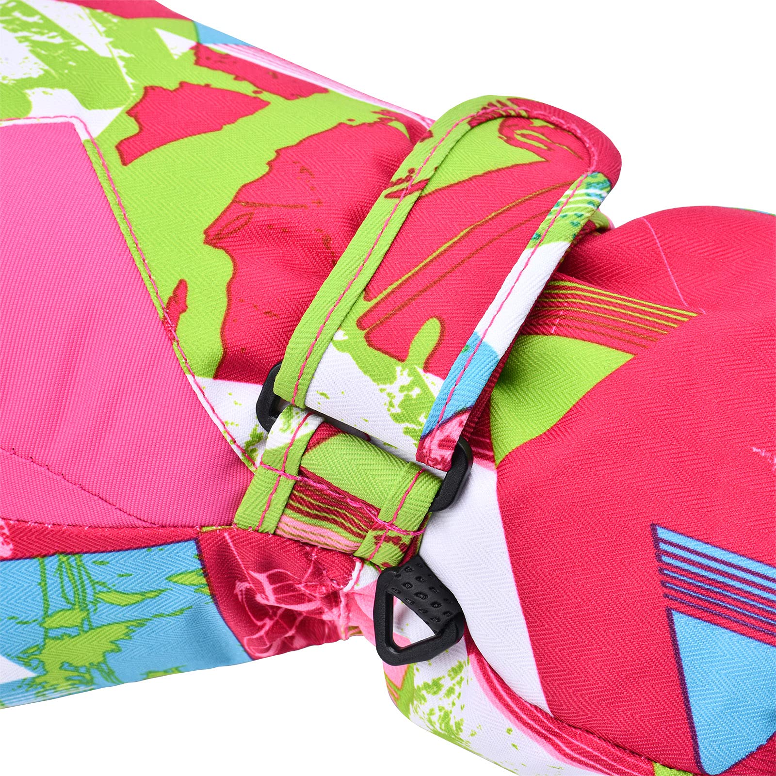 RunRRIn Ski Gloves, Waterproof Snow Gloves -30℉ Winter Gloves for Cold Weather, Warm Snowboarding Gloves - for Men, Women, Kids, Boys and Girls (Rose Red Green XS)