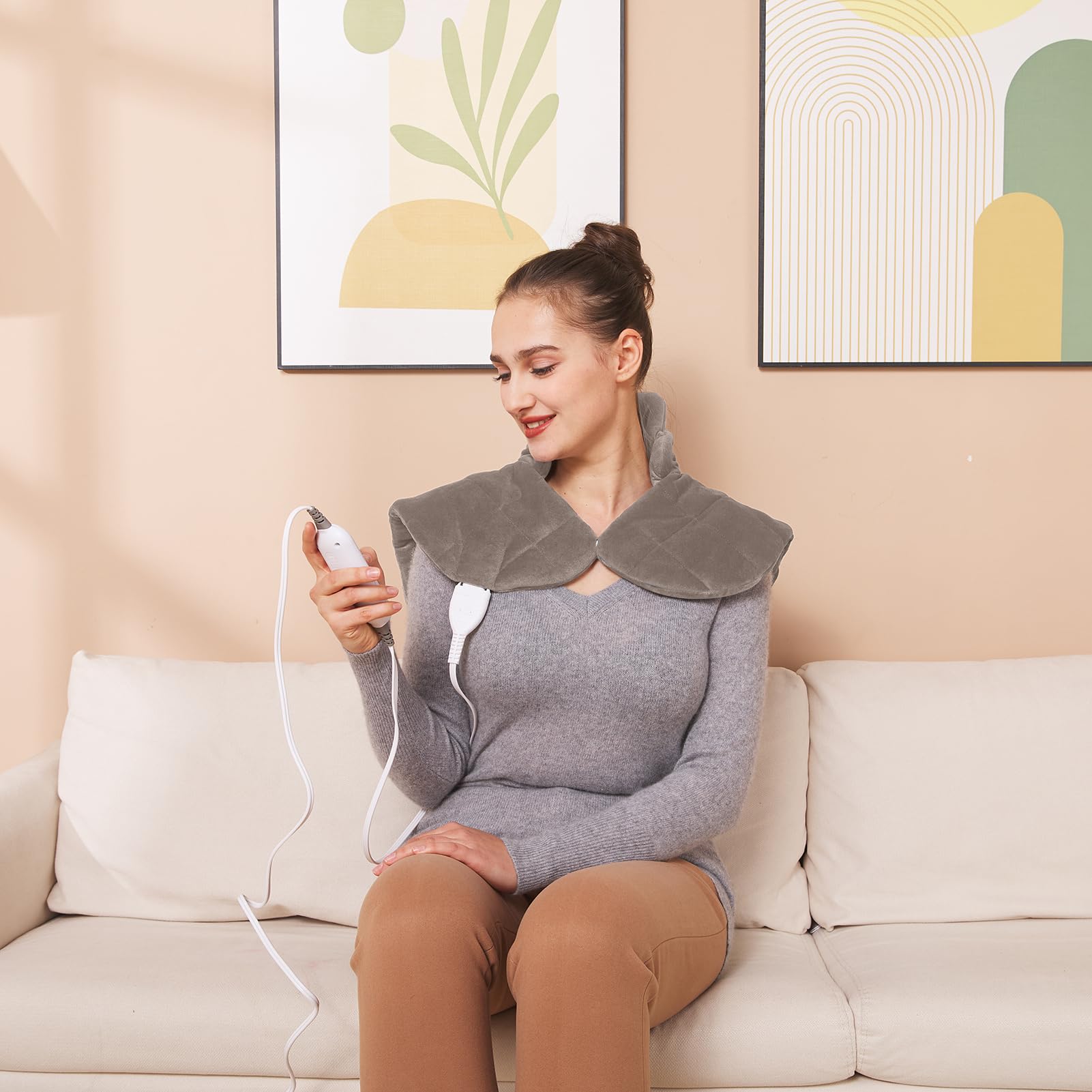 Details: Ruqiji 19''x24'' weighted neck&shoulder heating pad offers doublewide therapeutic coverage for sore muscles of your back, legs, and shoulders. With nearly twice the surface area of standard heating pads, it is ideal for wrapping around large areas to relieve arthritic pain, muscle ache and stiff joints. Use for just 20 minutes daily (or as recommended by your doctor) to increase blood flow and reduce pain and muscle spasms. Distributed glass beads in this heating pad can produce 2.5lb pressure, which makes the heating pad fit your any body parts better and focus and save more heat. And it helps relieve pain more effectively than a traditional heating pad because the weighted pressure design can better embrace you and relieve anxiety.