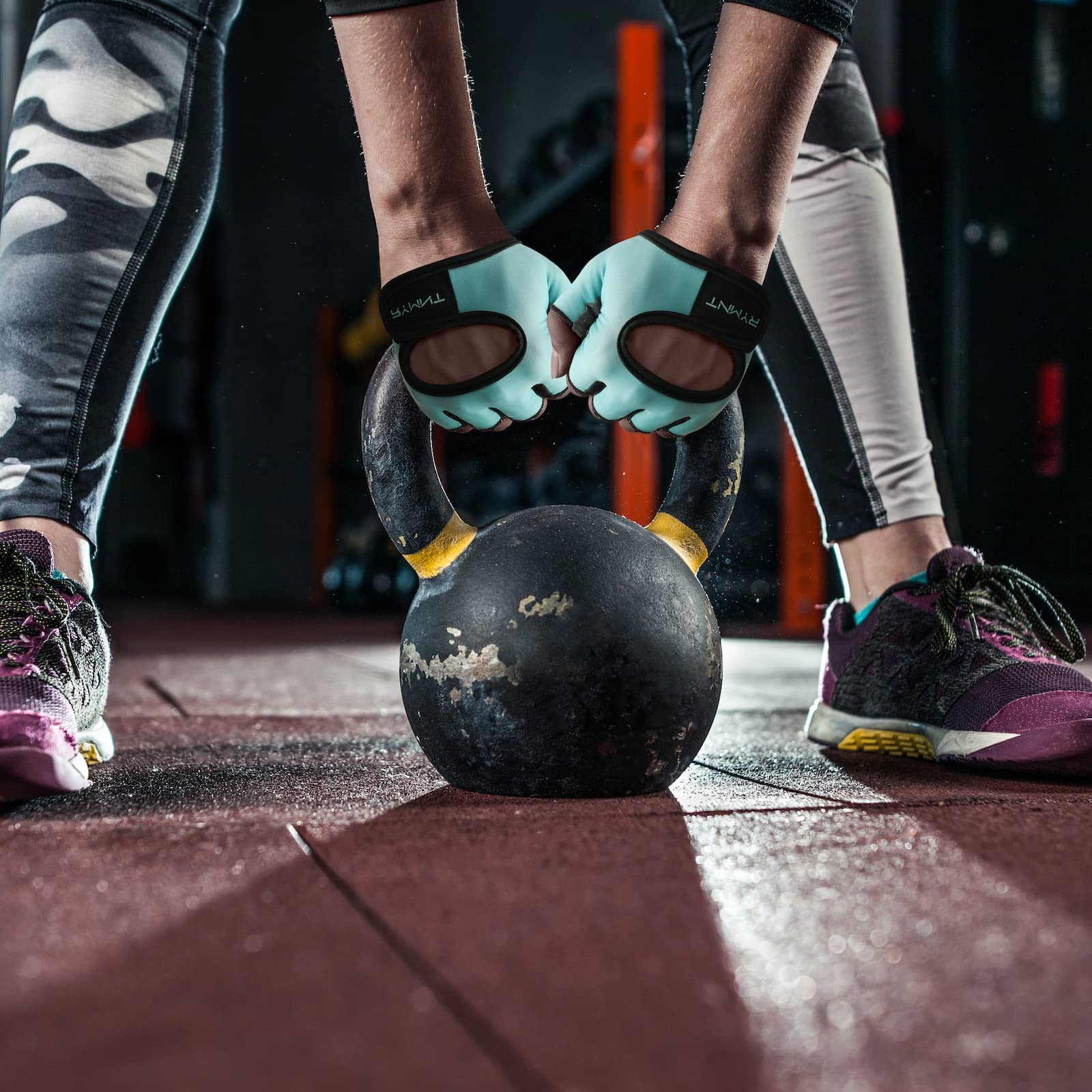 RYMNT Minimal Weight Lifting Gloves,Short Micro Workout Gloves Grip Pads with Full Palm Protection & Extra Grip for Men Women Weightlifting,Gym,Exercise Training.Aqua-Small