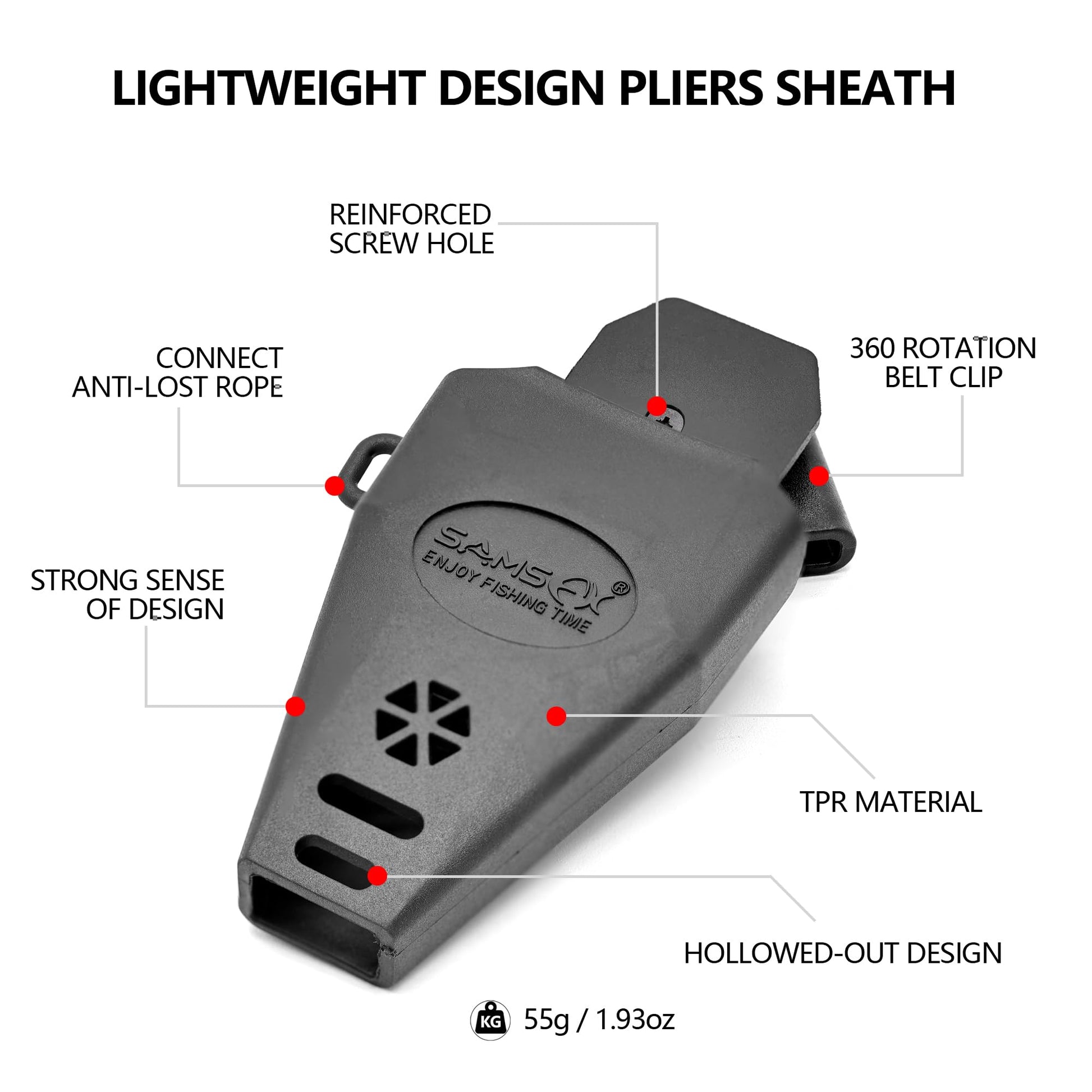 - SHEATH/LANYARD/ACCESSORIES INCLUDED:Includes a custom molded sheath with belt clip and steel wire coiled lanyard to keep this handy tool within easy reach and security. Come with fishing knot tying tool and zinger retractors kit, for everyone to tie their own tackles with a professional knot
