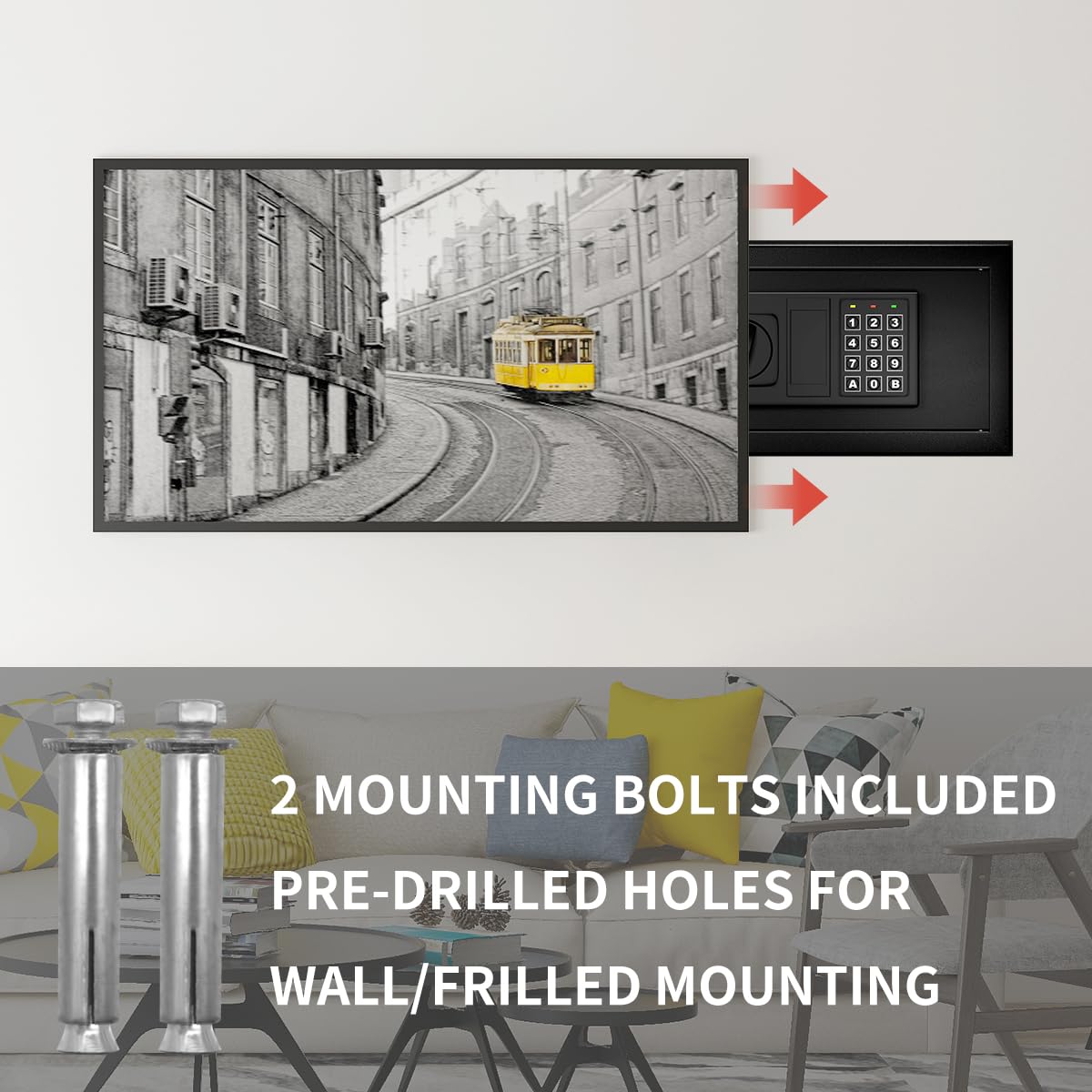 - 【Safe and Concealed】This small safe box for money has two thickened movable door bolts, a tamper-resistant steel door (thickness 2 inches) and a hidden tamper-proof hinge, improving the security of storing. The lock box with ingenious design can be completely hidden in your home or office environment. You can easily install it in a wall shelf or cabinet by 2 expansion bolts.