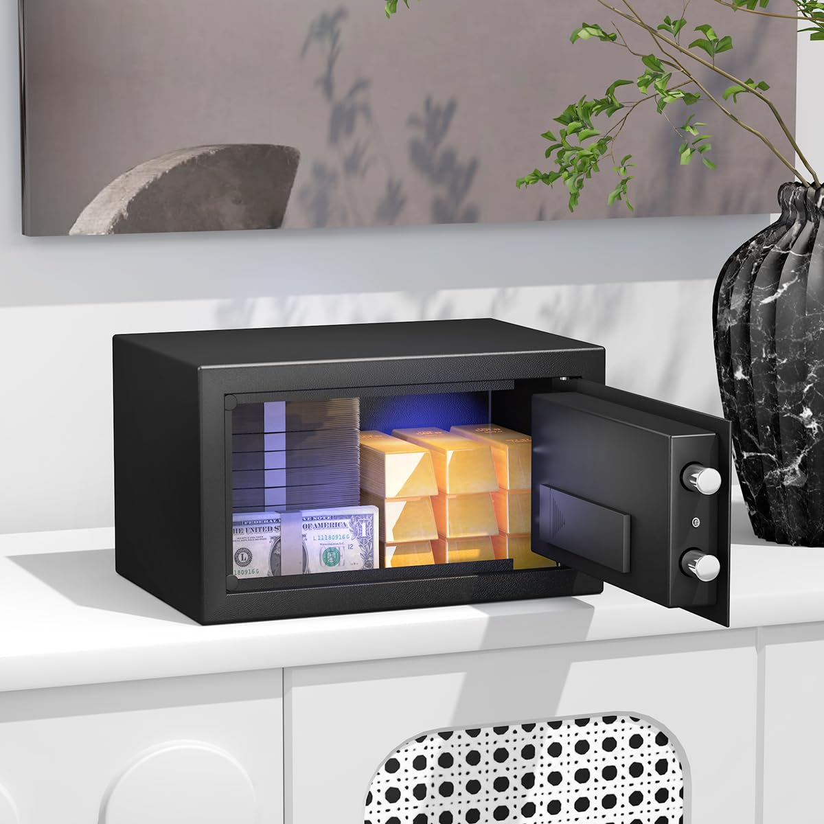 SamYerSafe Safe Box with Sensor Light,Security Lock Box, Steel Construction Hidden Electronic Safe with Lock,0.4 Cubic Feet ,Wall or Cabinet Anchoring Design for Home, Black