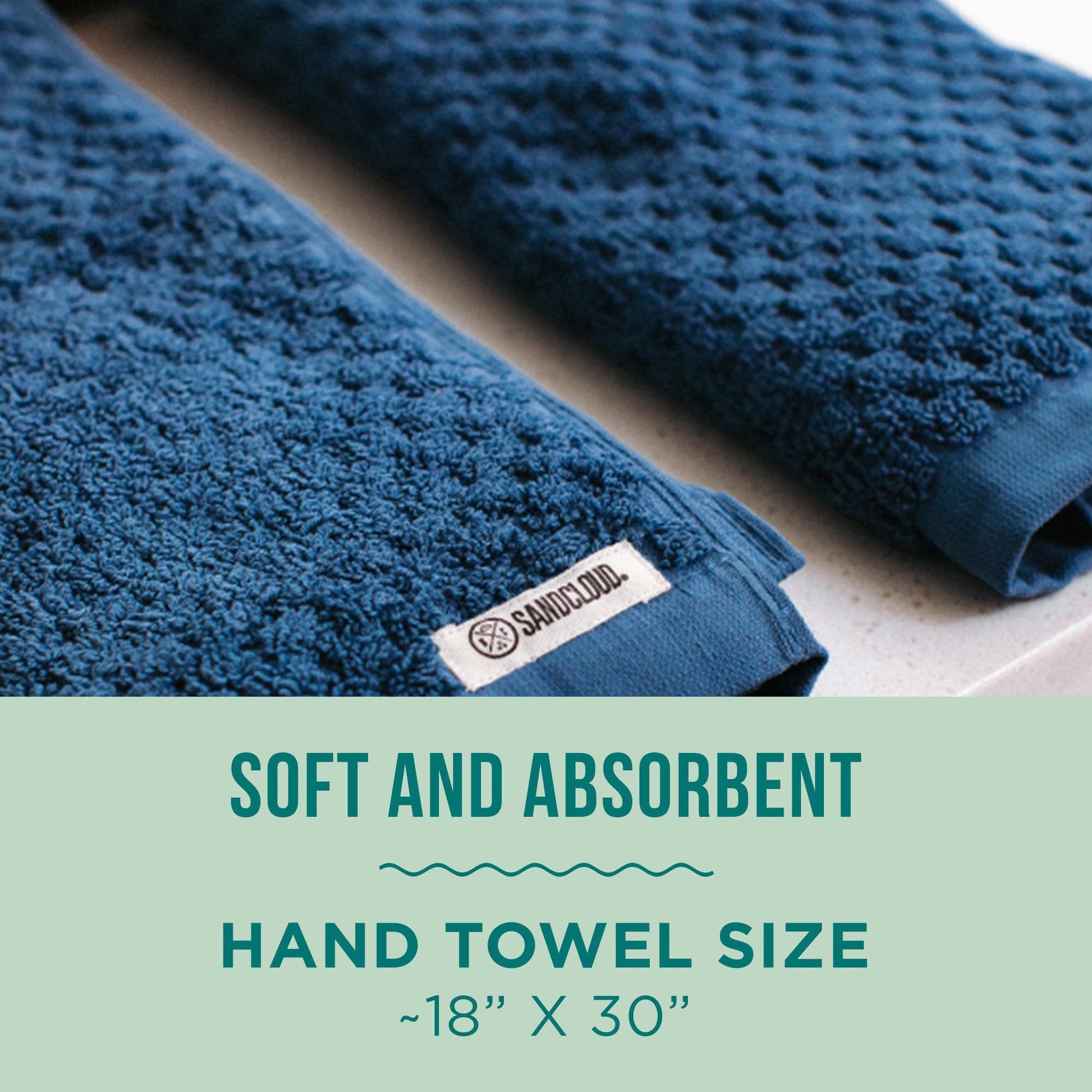 - Lightweight Organic Cotton Bath Bundle: Freshen up with the Sand Cloud Atom Hand Bath Bundle, featuring 2 two-ply hand towels (18” x 30”) with polka dot design. Instantly elevate any bathroom with this two-piece essential. Slate blue color.
