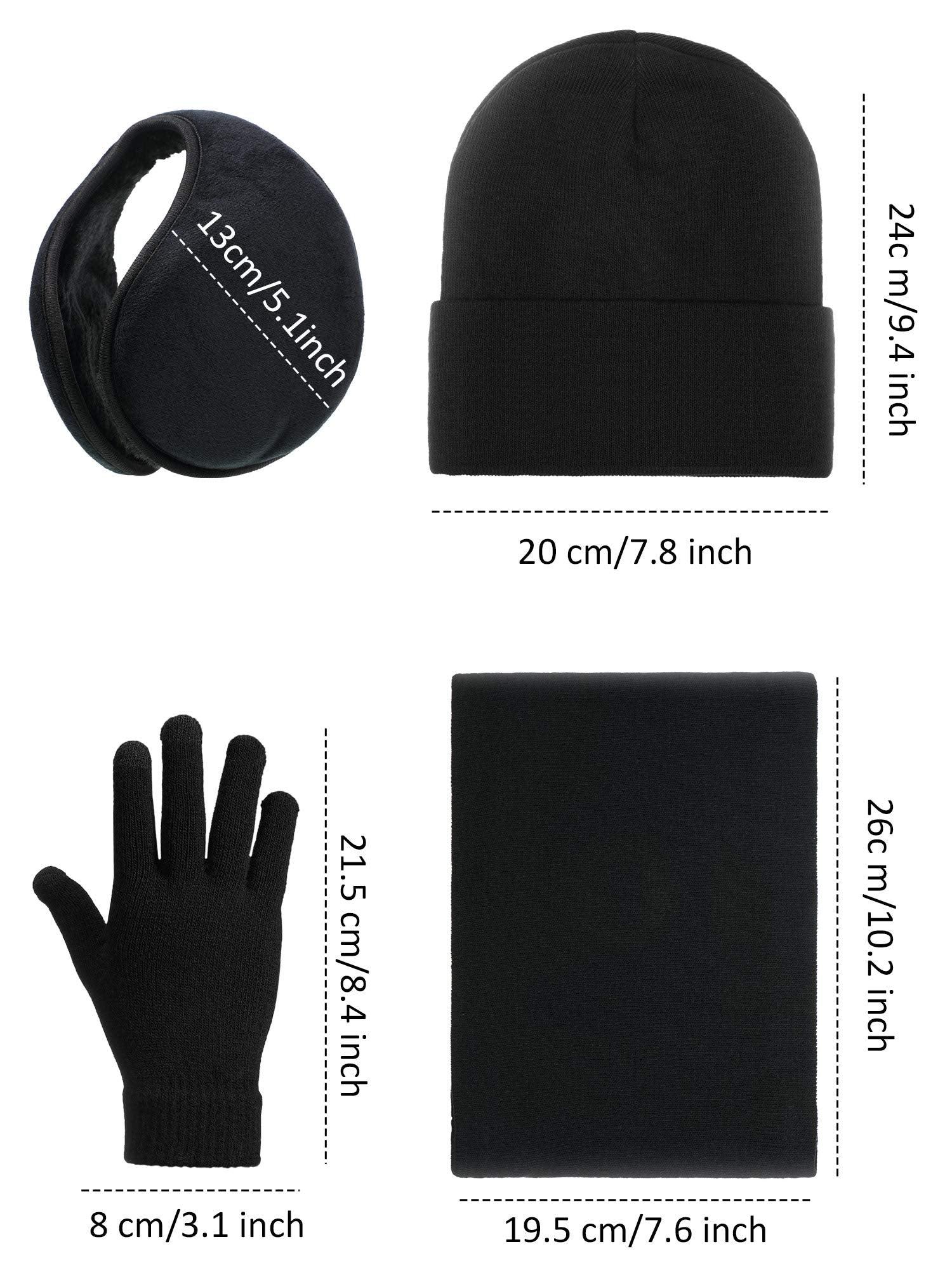 SATINIOR 4 Pack Winter Warm Knitted Set Unisex Beanie Hat Circle Loop Scarf Touchscreen Gloves and Earmuffs (Black), Medium