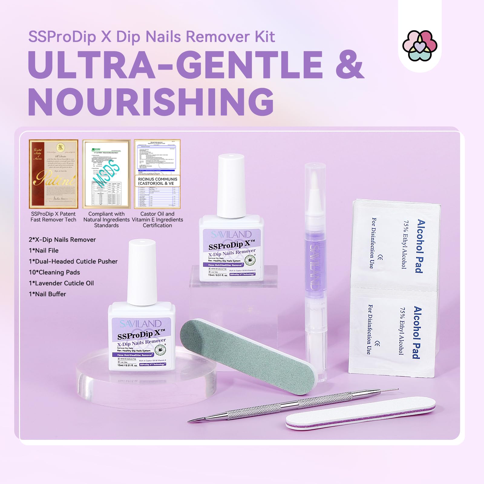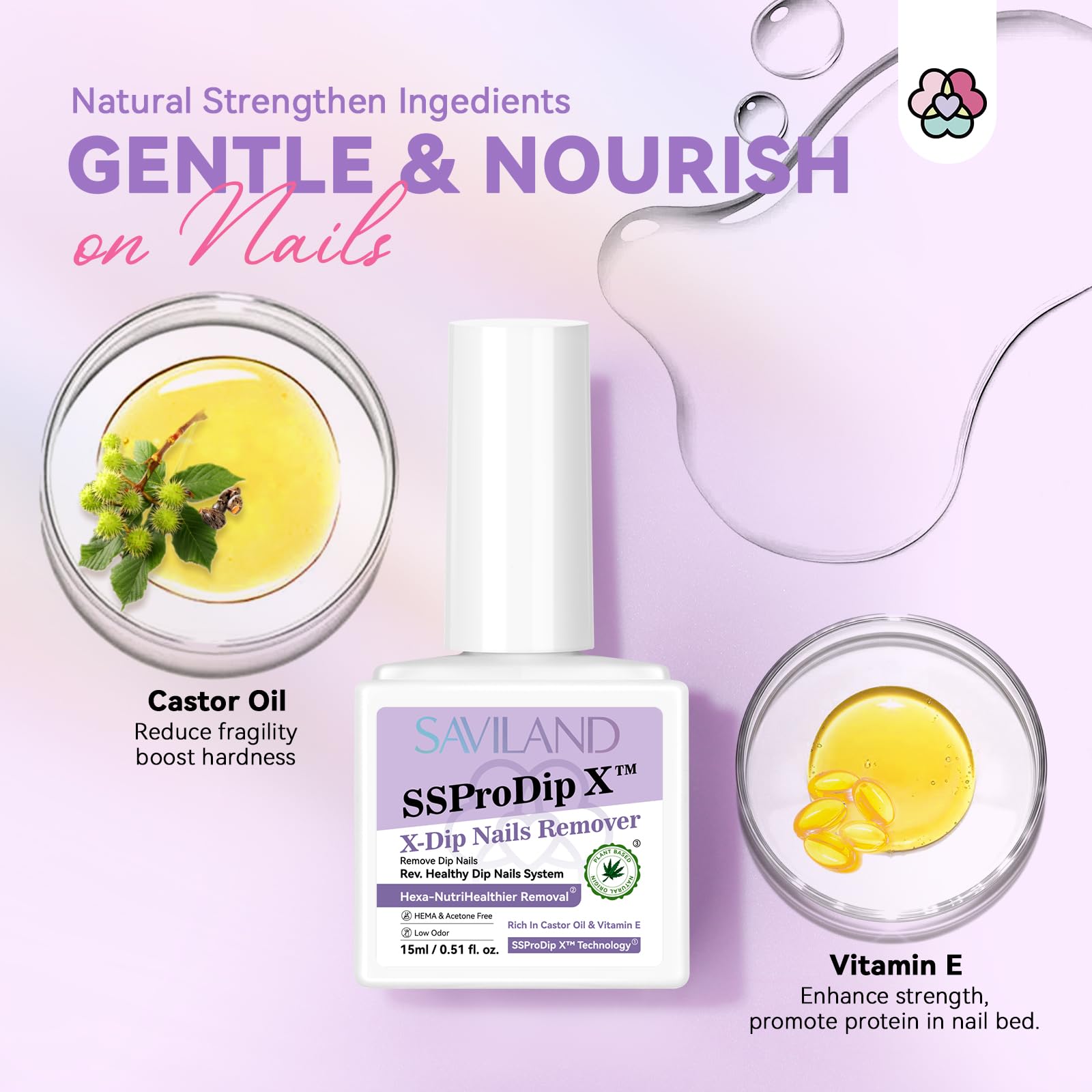 - Nutri-infused & Damage-free: With SSProDip X technology, we combine multi plant-based nutrients such as castor oil, and vitamin E to enrich your nails. This gentle approach ensures a nurturing experience during dip powder removal or nail care, keeping your nails healthy and beautiful without any harm