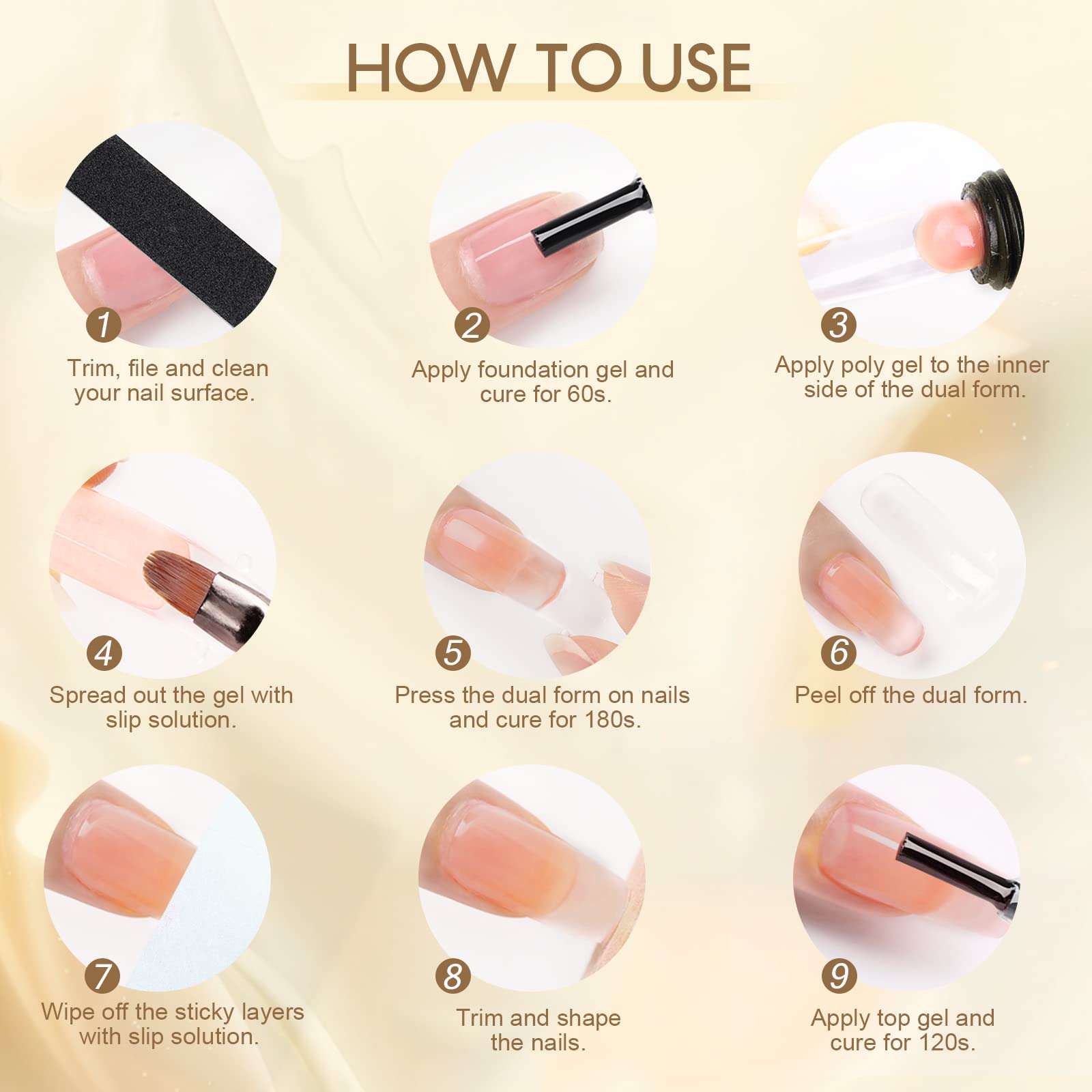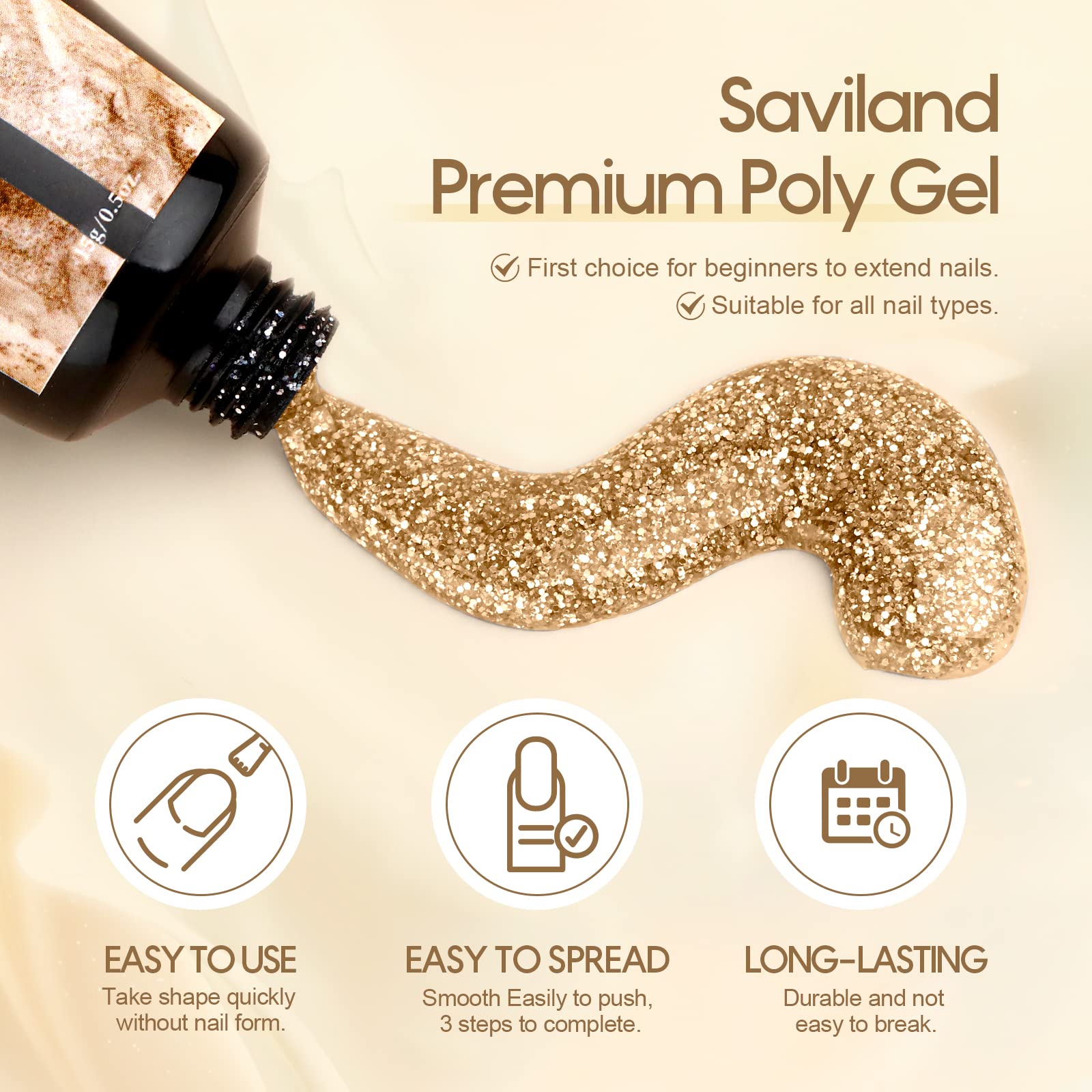 Saviland Poly Nail Gel Kit 7 Colors Glitter Red Nudes Poly Nail Extension Gel Kit Builder Nail Gel Poly Gel Nail Enhancement Manicure Kit for Professional and Starter