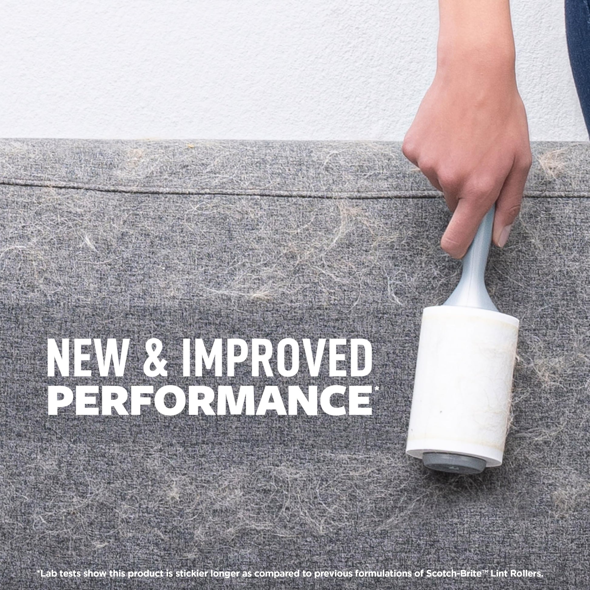Details: Pick up fluff and other stuff with the Scotch-Brite™ Pet Hair Pickup Lint Roller. Perfect for clearing fur from clothes, furniture, pillows, rugs, and more. From couches, to car seats, to carpet, this pet lint roller is an essential tool for all pet parents. Whether your dog tracked in dirt, or you took a tumble in your Calico's cat bed, these lint rollers for clothes are 50% stickier than the standard Scotch-Brite™ Lint Roller*. The rolling surface means you can make quick touchups on the fly, all without a vacuum cleaner. So go ahead, wrestle with your furry friend and brush their coat — then roll away the evidence with the Scotch-Brite™ Pet Hair Pickup Extra Sticky* Lint Roller for dog and cat hair removal. To make it even better, the handle feels comfortable in your hand and the 100 Easy-Tear Sheets tear off clean down to the last one. Try the only lint roller made with reliable Scotch Brand adhesive for great performance and see why Scotch-Brite is America’s #1 Lint Roller Brand. *Compared to standard Scotch-Brite Lint Rollers based on laboratory testing on fabric.
