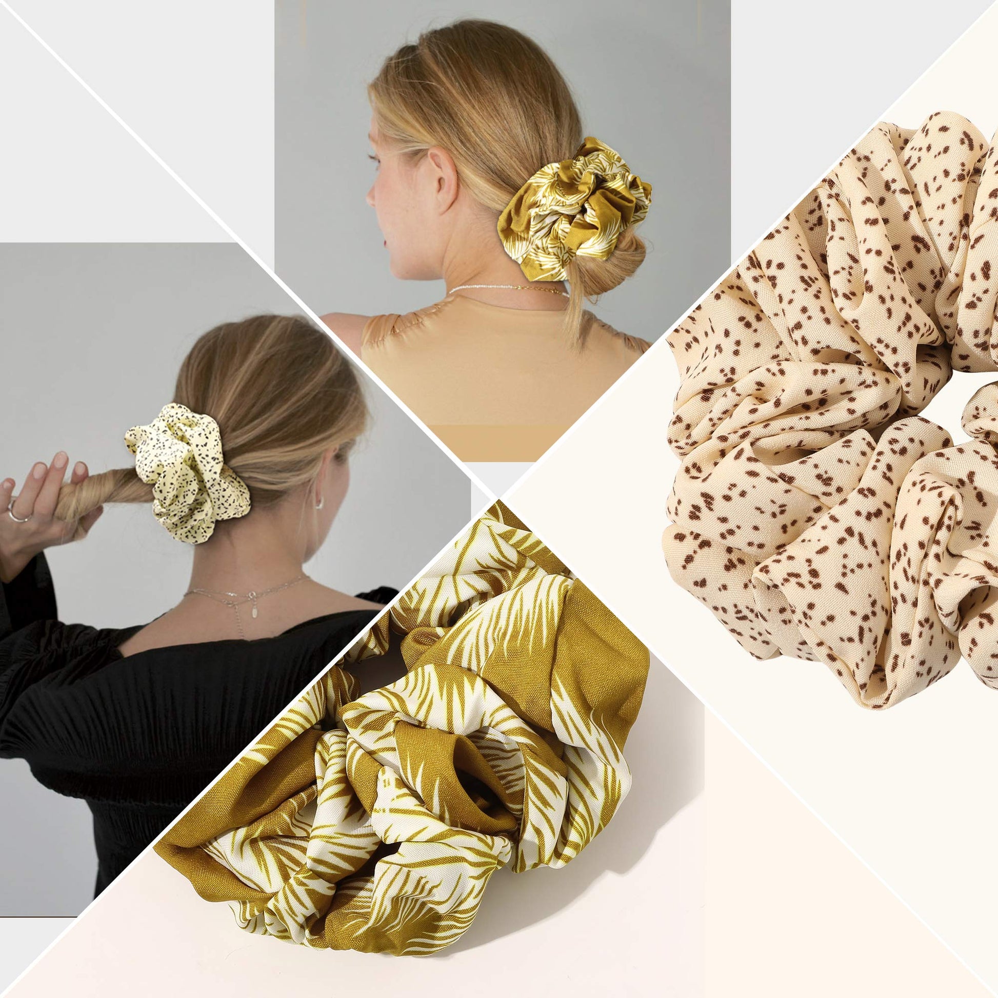 Scrunchies Hair Ties for Women - Big Silk Satin Scrunchie Exra Large Jumbo Gaint Oversized Cute Scrunchy for Curl Thick Hair Yellow Ligas Para el Cabello De Mujer Decorations Gift for Girls
