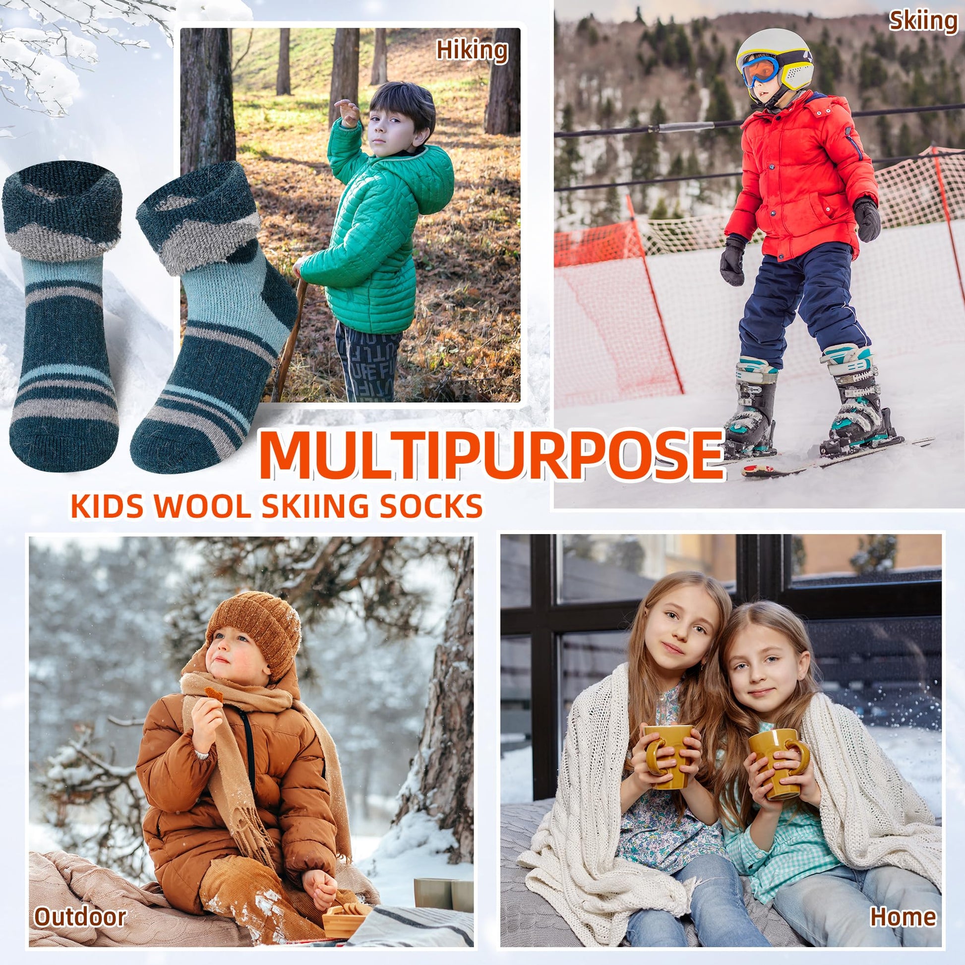 - Stay Warm and Dry in Any Weather - Whether it's freezing cold or slightly warmer, these thermal socks excel at regulating temperature. The moisture-wicking properties of Merino wool keep your child's feet dry by pulling sweat away from the skin, while the insulation keeps them warm in chilly conditions. Let your child focus on the thrill of winter sports, not on cold and wet feet.