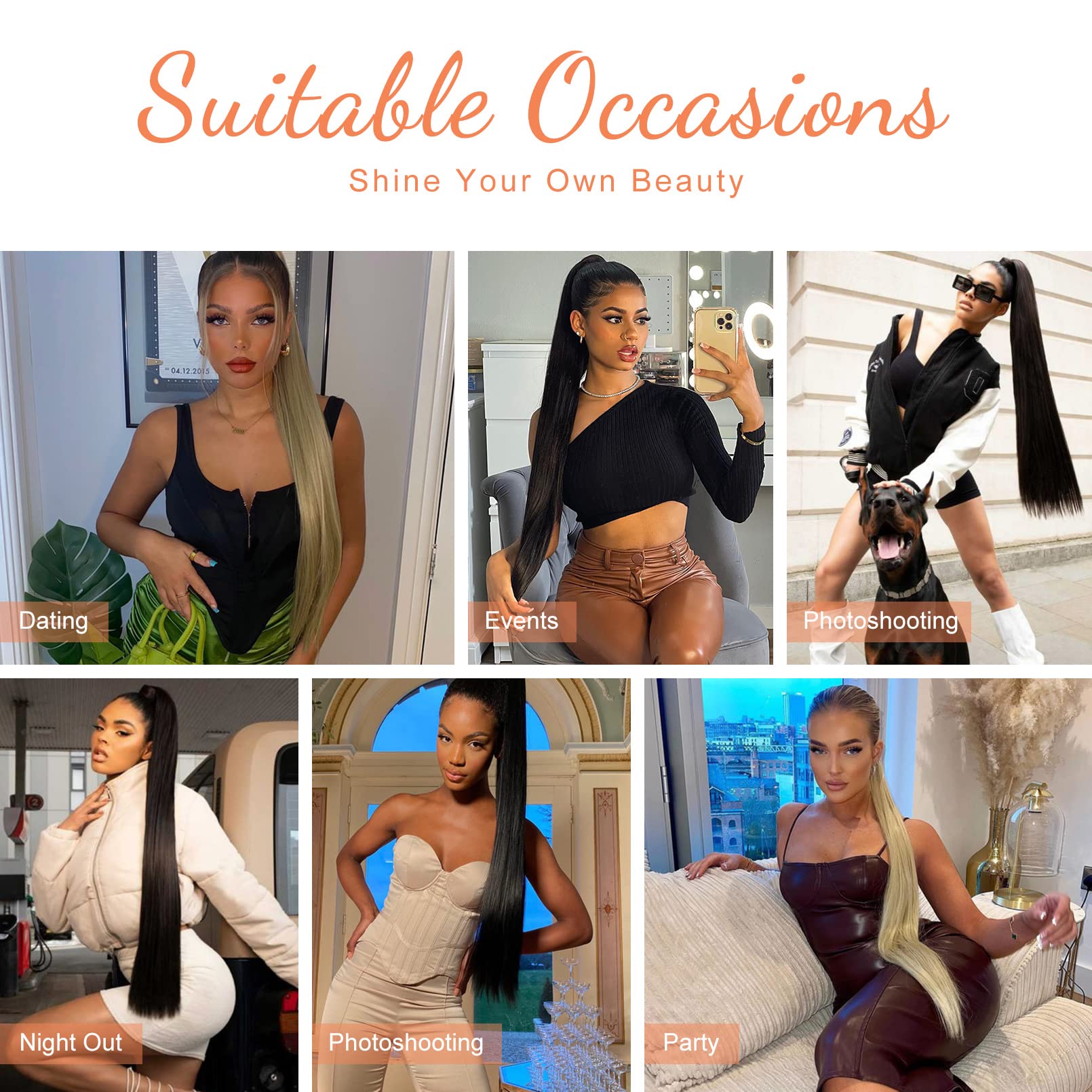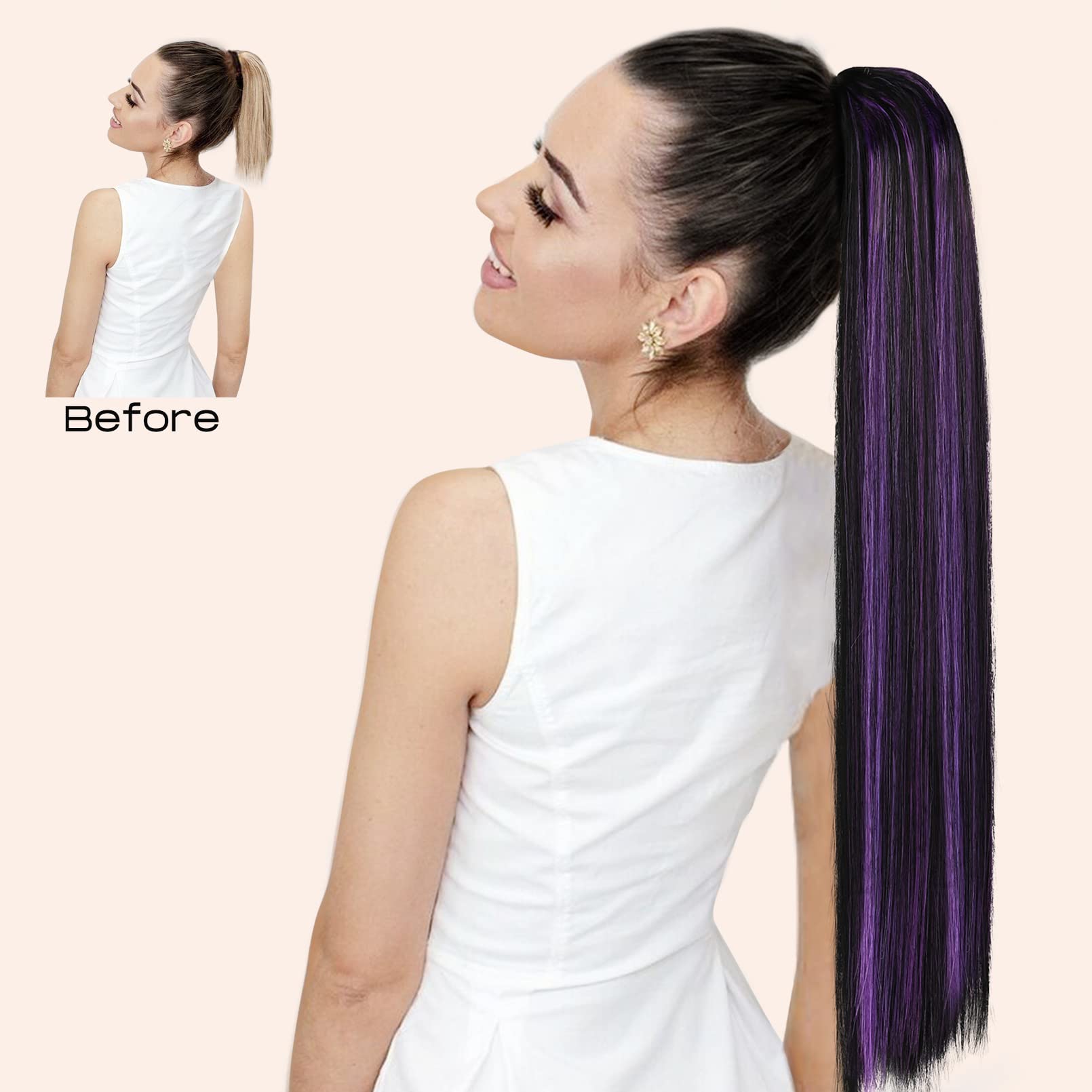 - Washable and Reuse - Before washing the fake pony tail, please comb it first, then wash with cold water, adding some shampoo and conditioner, roll it in a towel and let it air dry