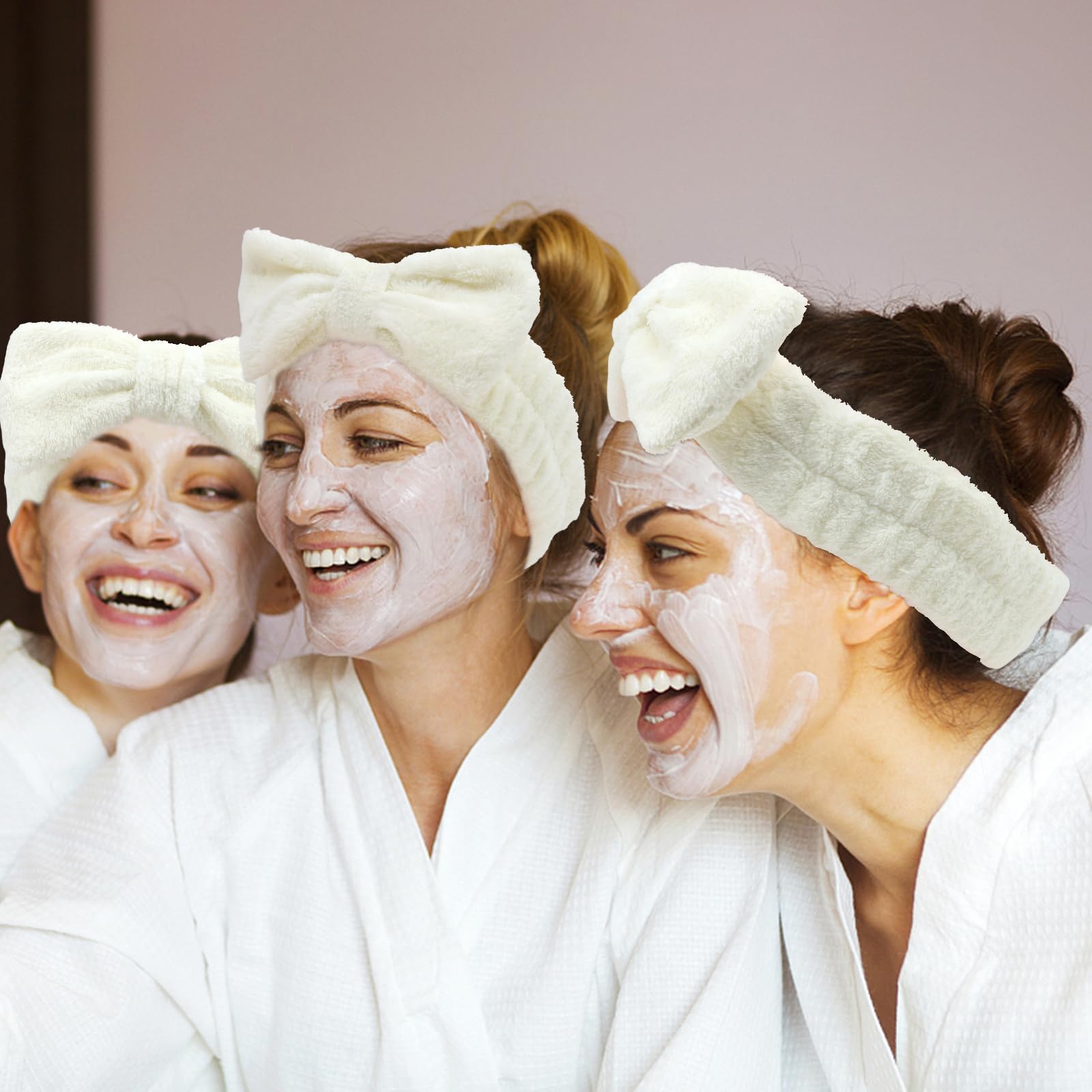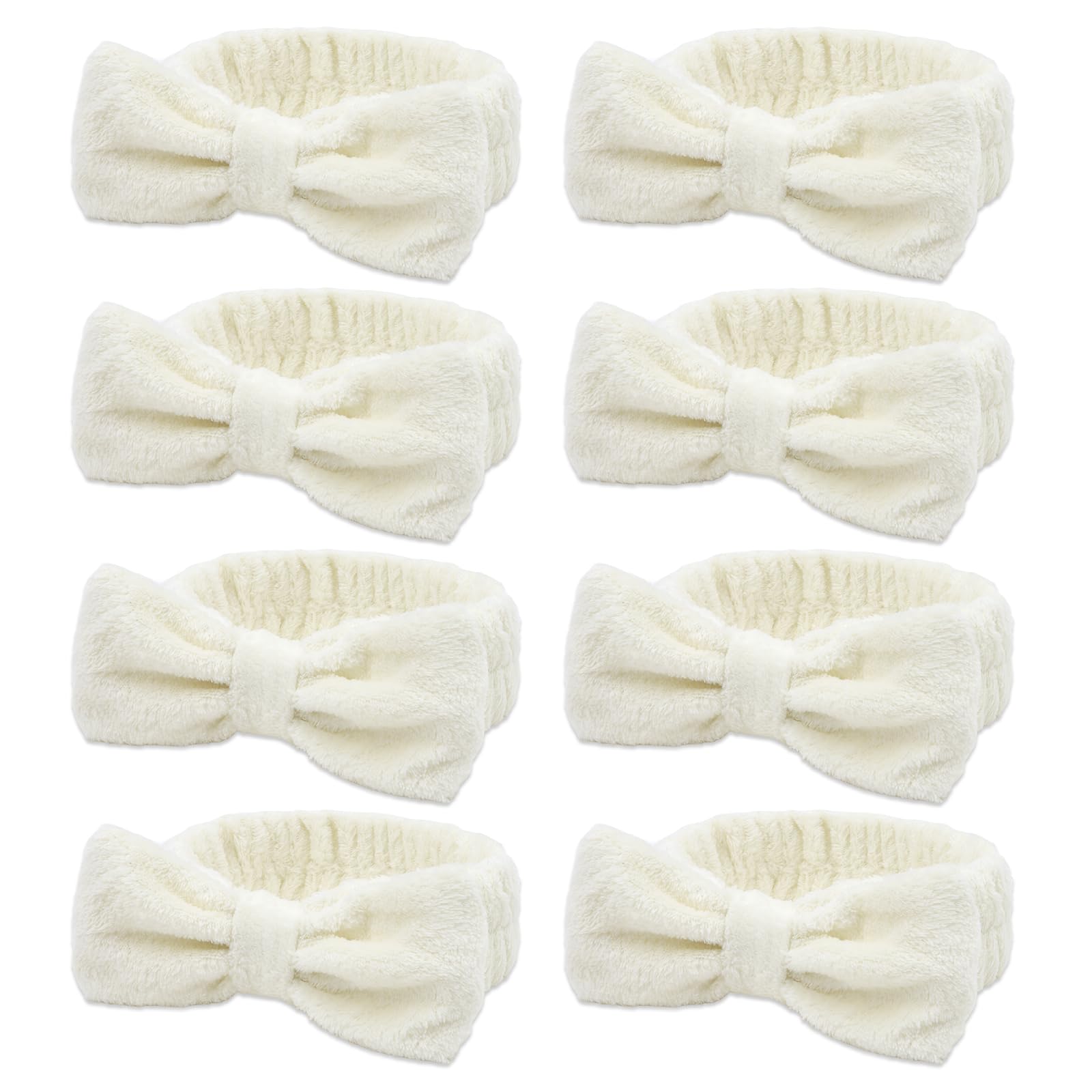 - 8Pcs White Bow Spa Headbands: You will receive 8 pieces of white spa headbands. The spa headband holds your hair in place while you wash your face, put on makeup, or apply a mask