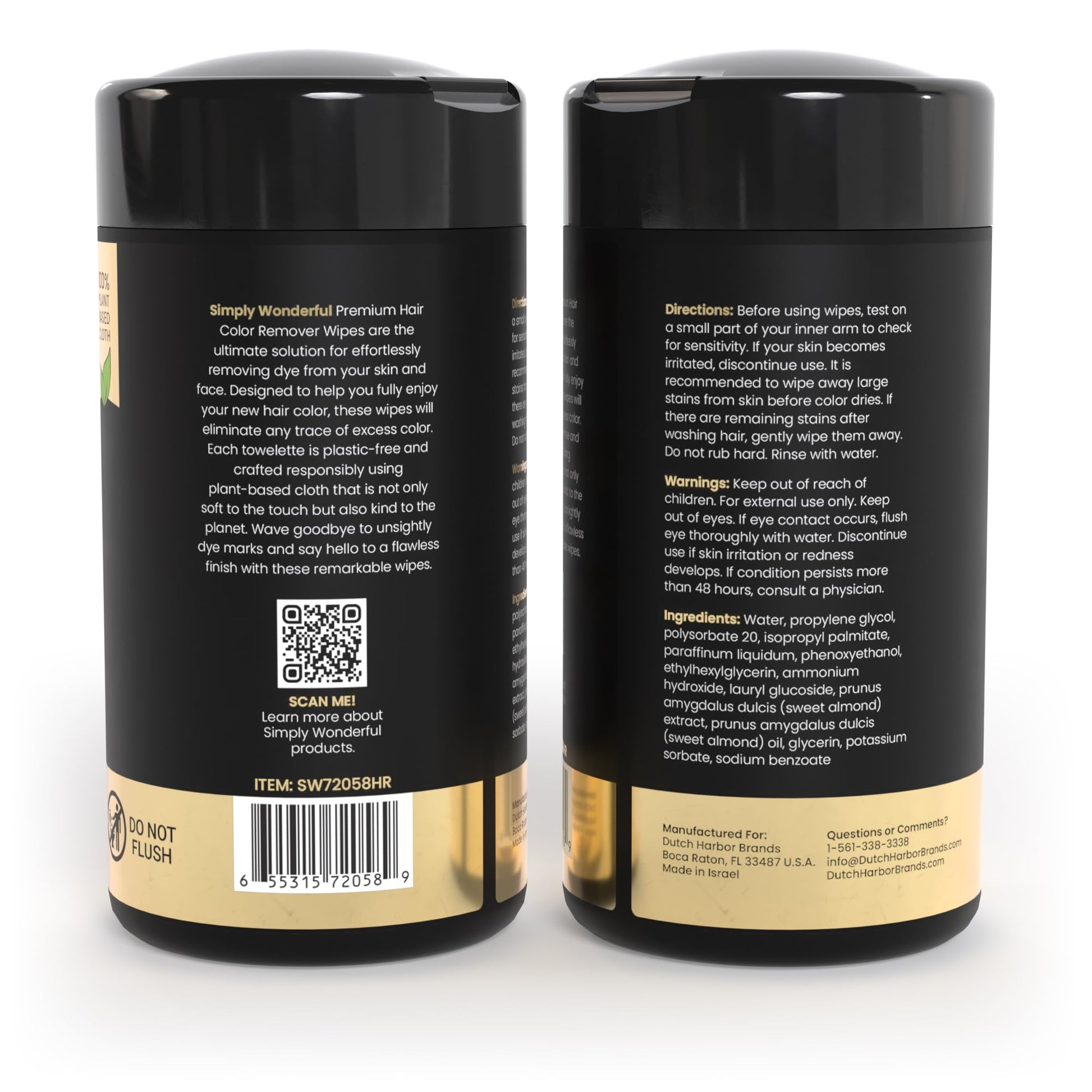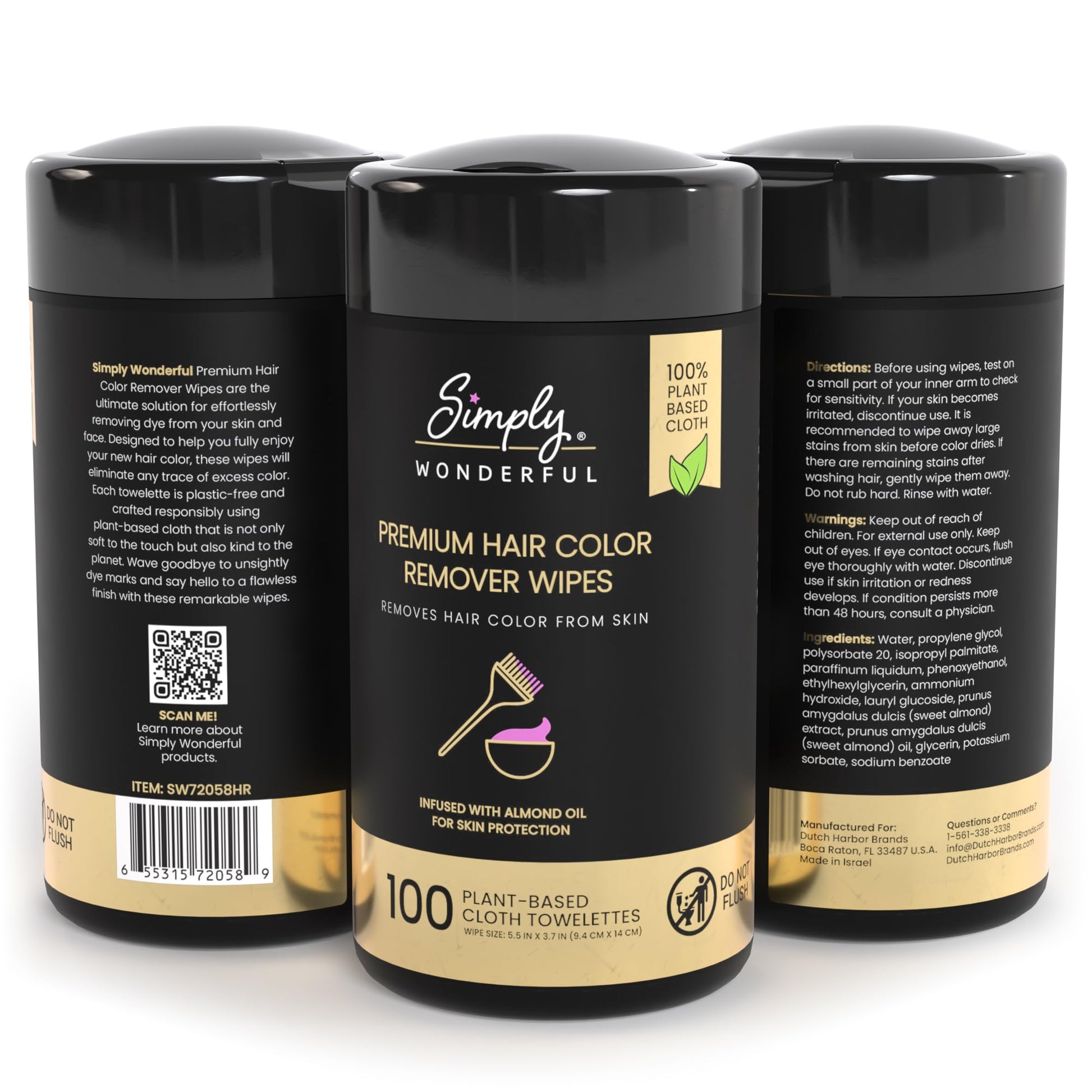- Simply Wonderful Premium Hair Color Remover for Skin is a 100-count non-irritating plant-based wipe infused with almond oil, designed to easily remove hair color stains from your face and skin.