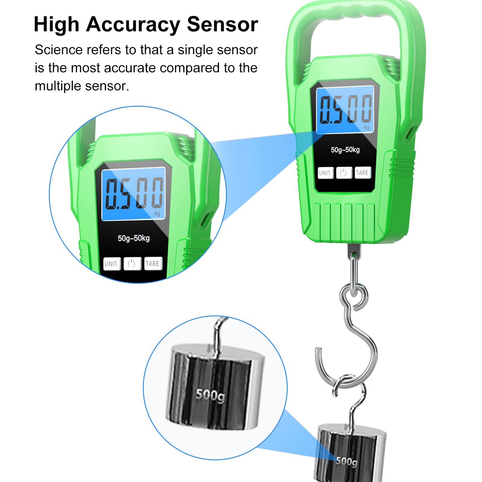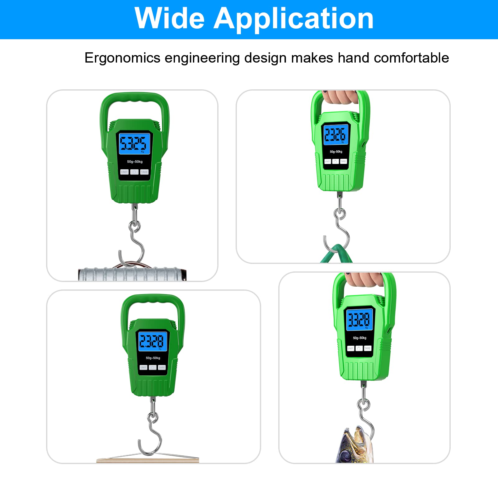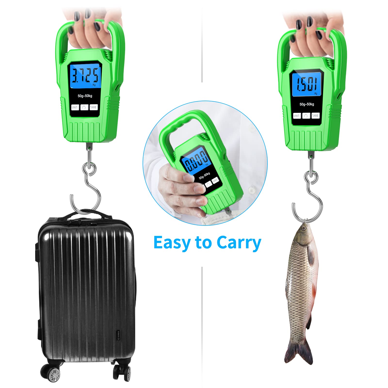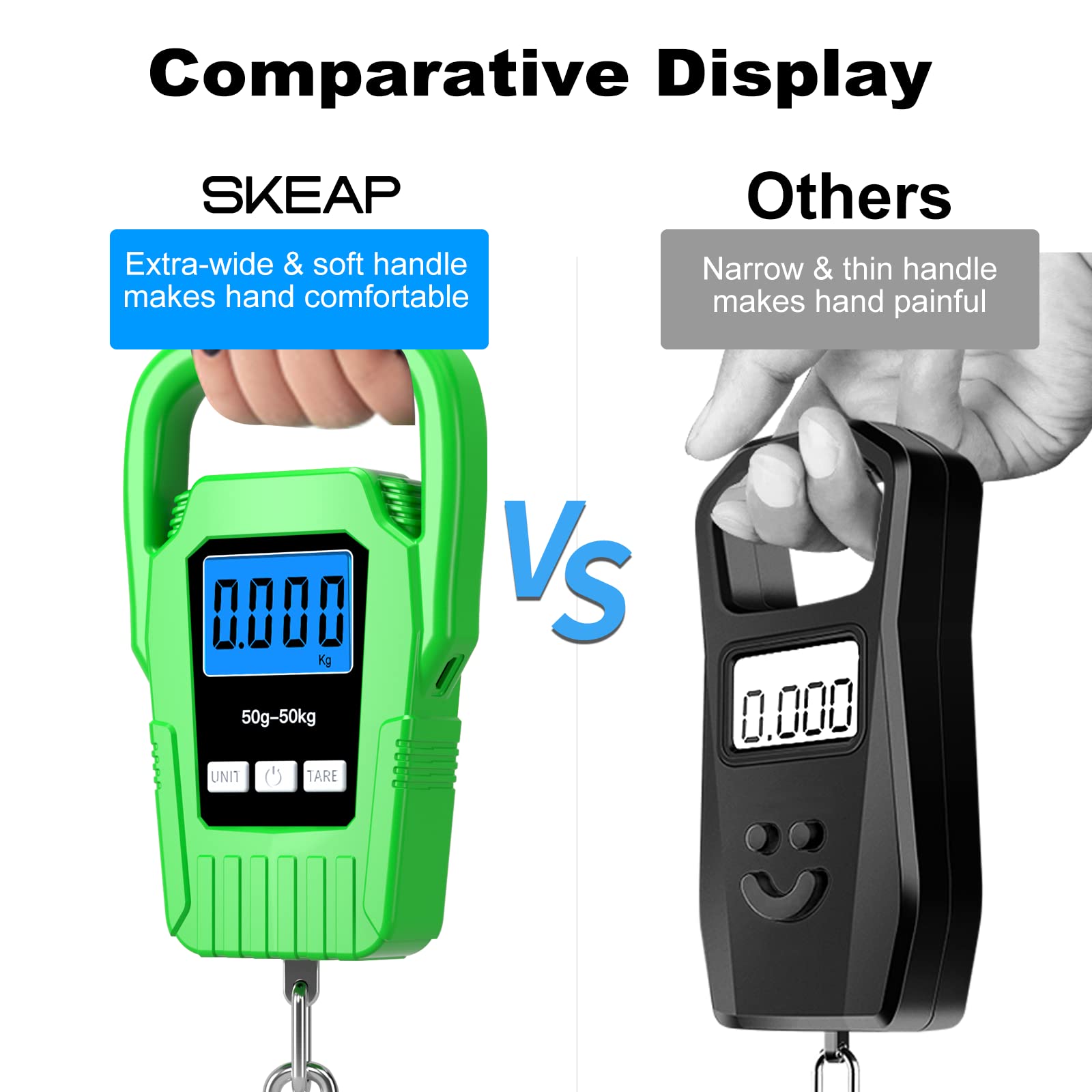SKEAP Digital Fish Scale Hanging Scale Fishing Scale,110lb/50kg Luggage Scale,Upgrade Large Handle & Backlit LCD Display, Electronic Balance Digital Fishing Postal Scale,Green,Fishing Gifts for Men