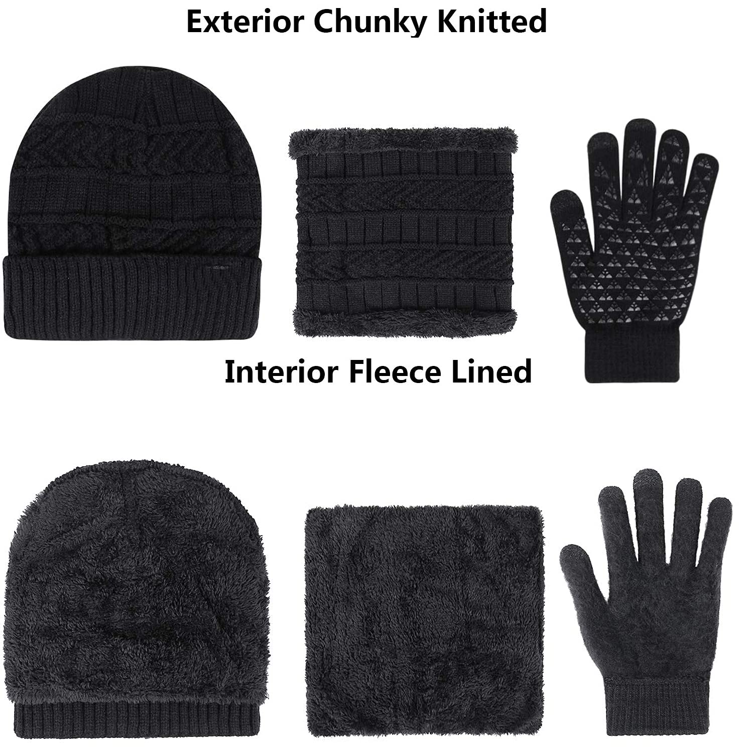 Ski Winter Beanie Hat Scarf Gloves Set for Men Women, Winter Knit Hat, Neck Warmer, Touchscreen Gloves,Ear Warmer Earmuff for Men Women