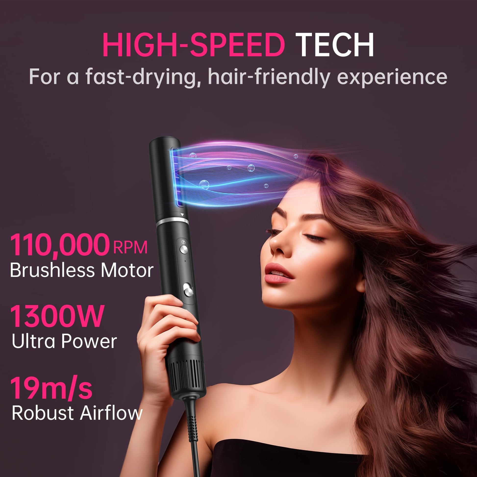 - High-Speed Drying Technology: Featuring a high-speed brushless motor that reaches110,000 RPM, this multi-hair styler delivers powerful airflow comparable to that of a brushless blow dryer. The brushless motor design makes it lighter and more powerful than traditional brushed products, resulting in a longer motor lifespan and leaving your hair smooth, shiny, and frizz-free in just minutes.