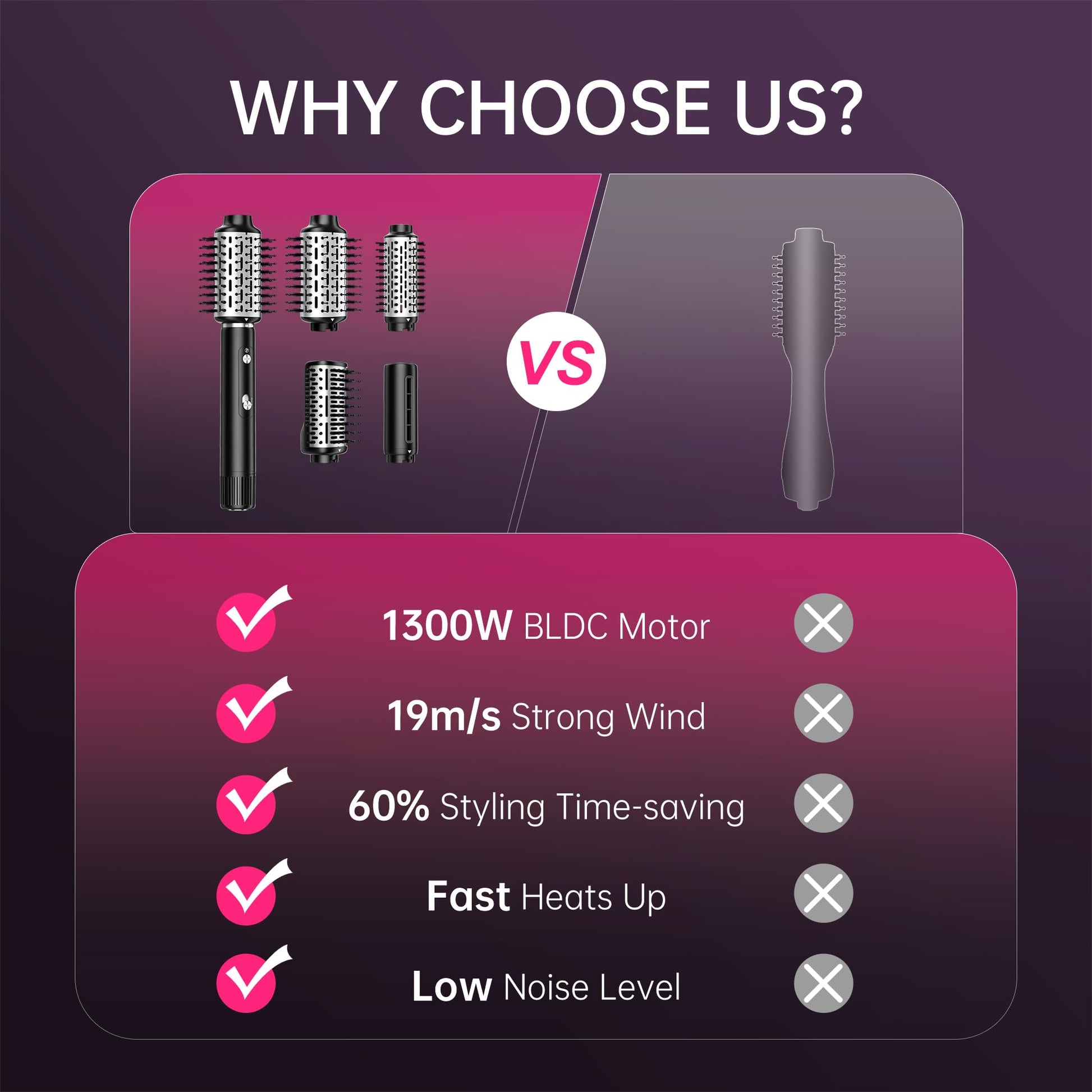 - Safety and Support Assurance: This blow dryer brush emphasizes safety with an ALCI plug, combined with noise-reducing design for a quiet styling experience. Enjoy smooth, shiny results with confidence, backed by our 24/7 dedicated customer support to resolve any issues.