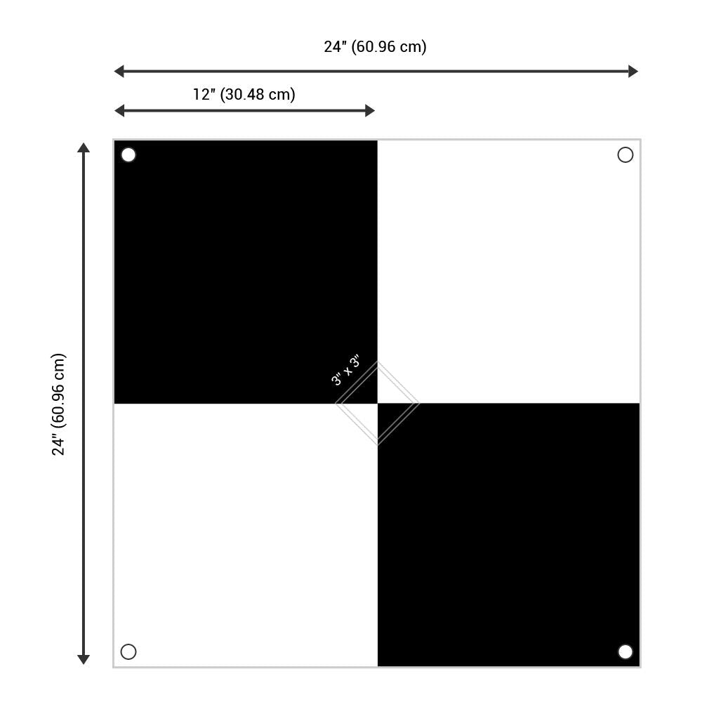 - 24”x24” AERIAL TARGETS - Designed for low to medium altitude drone mapping and scanning, these drone GCPs were made for drone mapping up to 400 feet. The standard size is useful when scaling and verifying the map, providing a standard reference distance during post-processing.