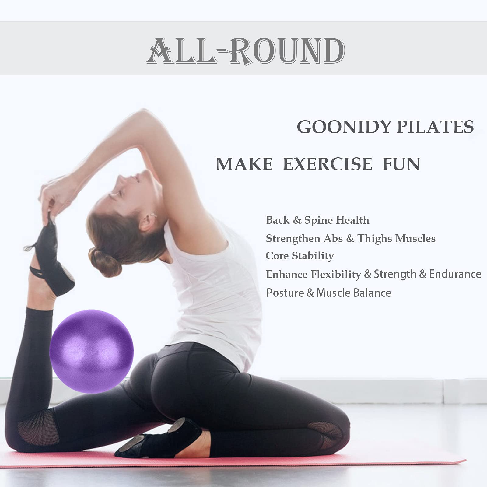 - PROFESSIONAL DESIGN - Made of soft, flexible, durable and skin-friendly PVC, can remain elastic and squishy even fully inflated. Special film attached to the surface, make Goonidy Pilates Ball smooth but non-slip, and can withstand 700lbs, not burst even if pierced by a sharp object.