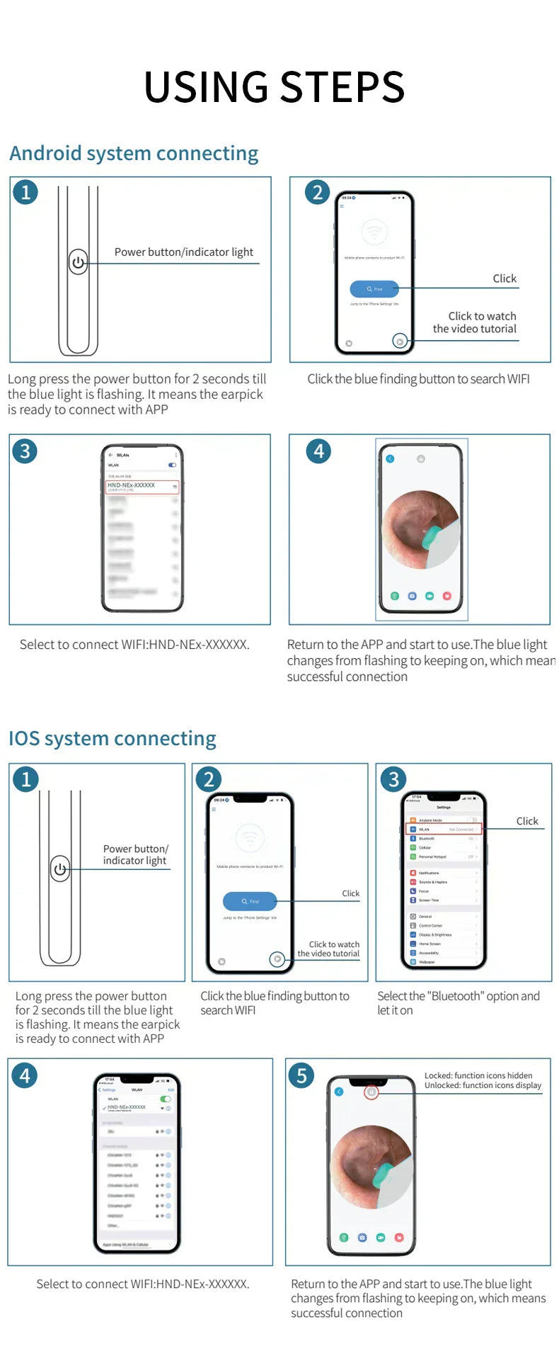Experience a new level of ear care with the Smart Visual Ear Cleaner HD Otoscope! This advanced device features HD resolution, allowing you to see the inside of your ear in high definition. The Smart Visual Ear Cleaner HD Otoscope comes with a camera that streams live footage to your phone, making ear cleaning safe and precise. Its ergonomic design ensures comfort while using the Smart Visual Ear Cleaner HD Otoscope, and its gentle cleaning tips make it suitable for all ages. With the Smart Visual Ear Cleaner HD Otoscope, you can monitor your ear health effectively, preventing buildup and discomfort. Enjoy an easier, more accurate cleaning experience with the Smart Visual Ear Cleaner HD Otoscope! Smart Visual Ear Cleaner HD Otoscope!
