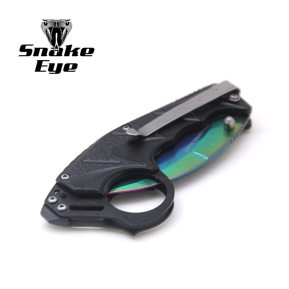 Snake Eye Tactical Everyday Carry Spring Assist Style Folding Pocket Knife EDC (Rainbow)