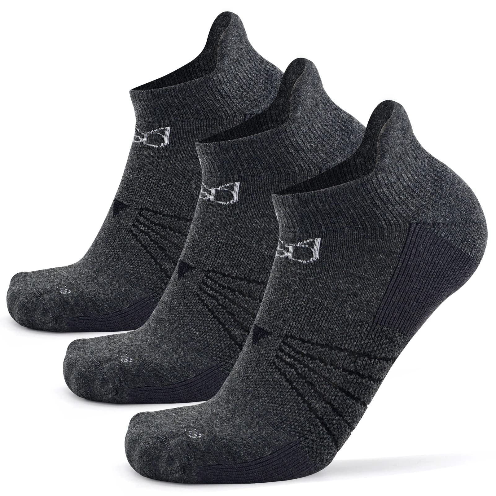 Socks Daze Womens Wool Workout Gym Athletic Socks Pack, Big Girls Boys Winter Ankle Thick Cushioned Long Distance Marathon Basketball Wool Socks, 3 Pairs Dark Grey, Medium