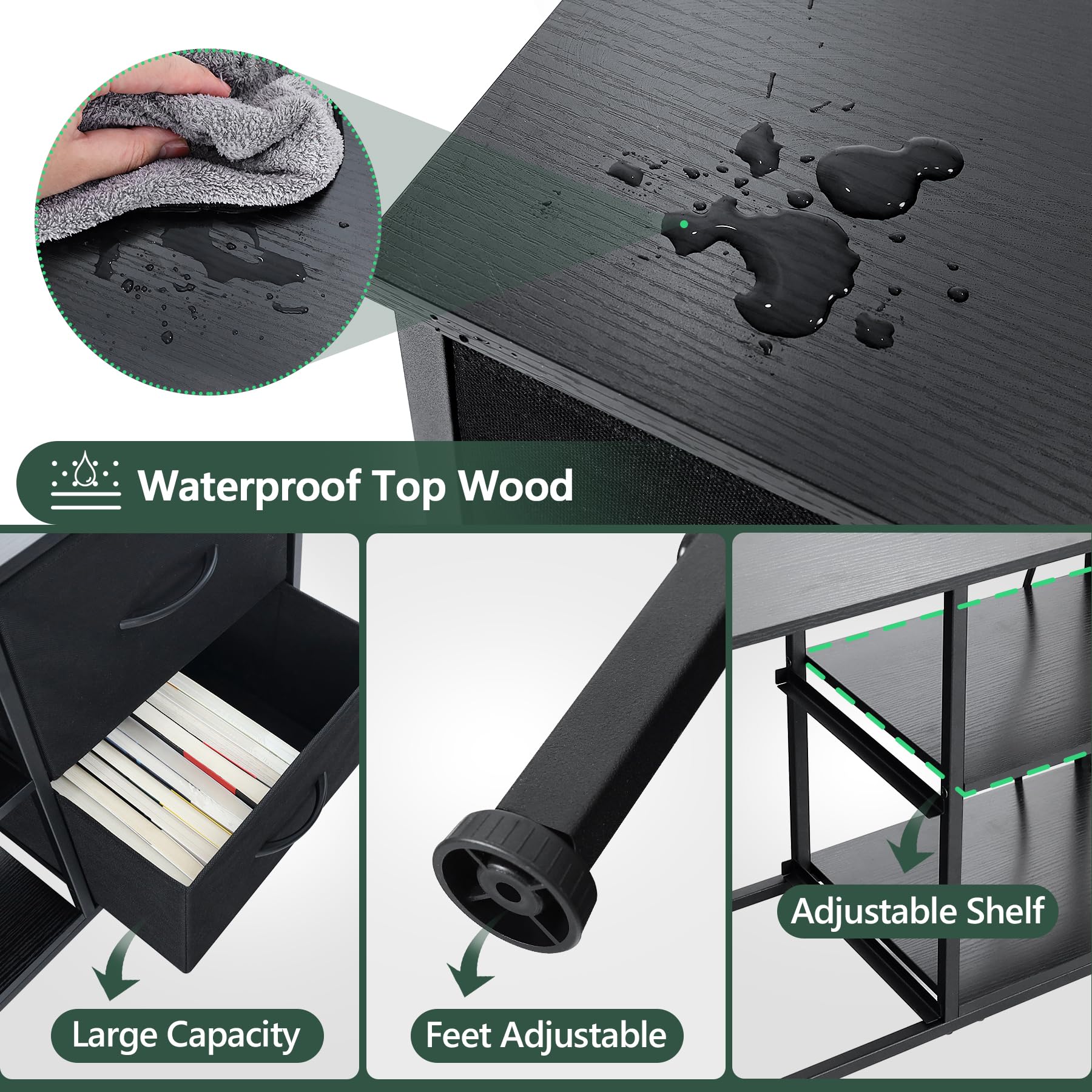 - Durable Material - This tv table is made of non-woven synthetic fiber, harmless and wear-resistant. Strong steel frame and water-resistant wood top offer stable support. Easy-pull drawers with plastic handles for smooth opening and closing.