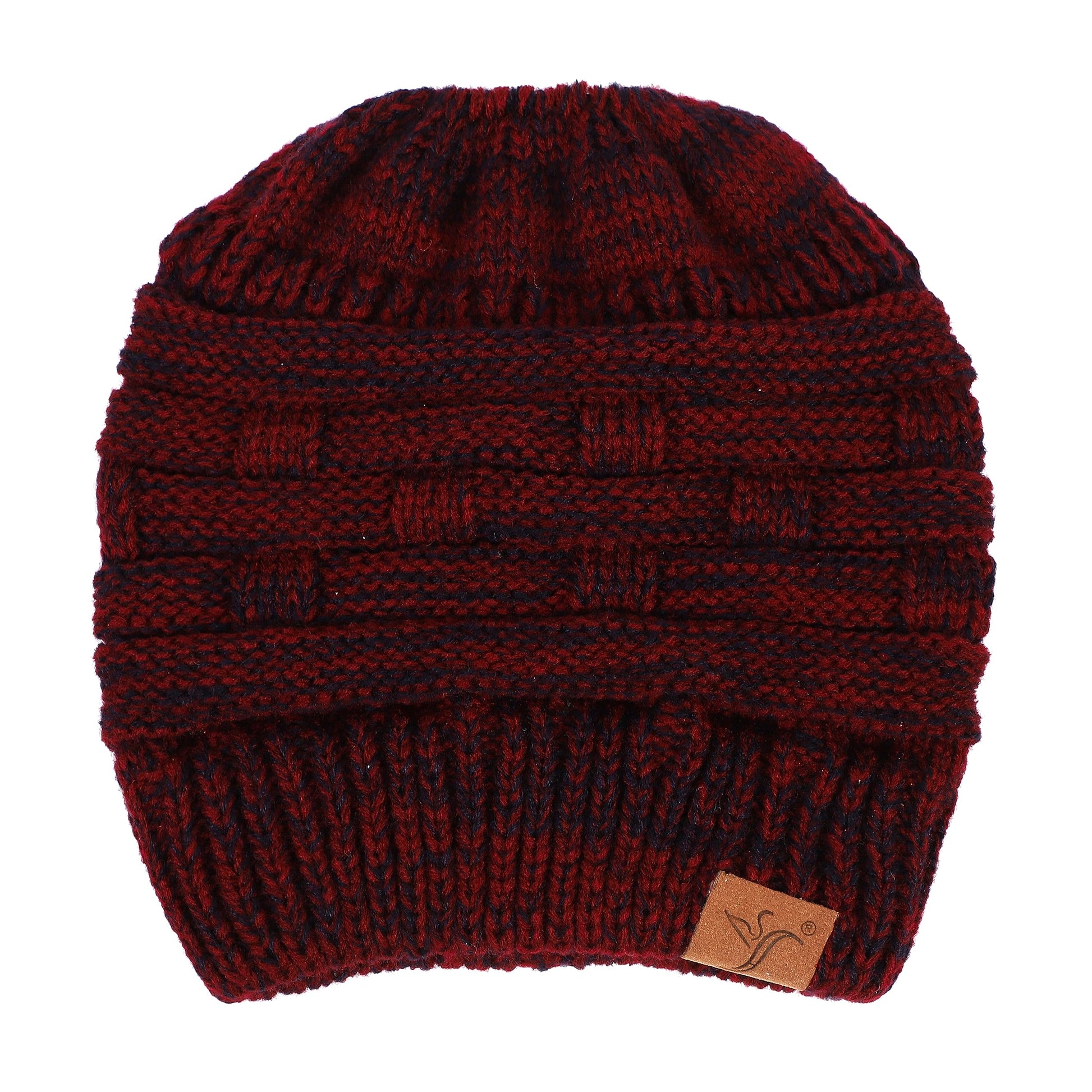 Soul Young Ponytail Messy Bun Beanie Tail Knit Hole Soft Stretch Cable Winter Hat for Women(One Size,Burgendy)