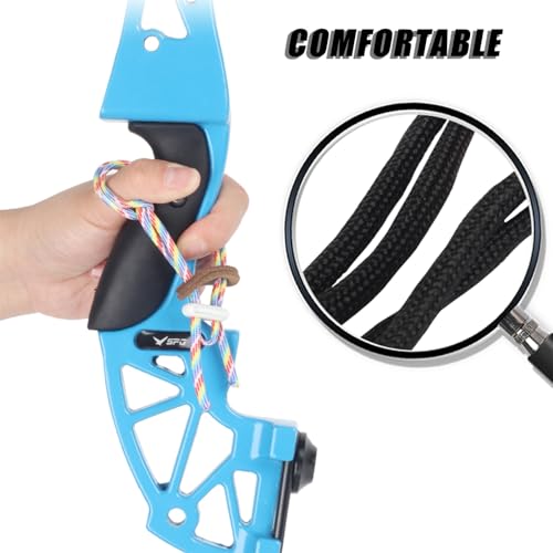 - OPTIONAL SIZE&ADJUSTABLE LENGTH: Three different lengths are available, rainbow colour -14cm/black-16cm/blue-18cm (5.5''/6.3''/7''), the archer can operate the adjustable buckle on the bow sling according to the fingers and bow riser size.