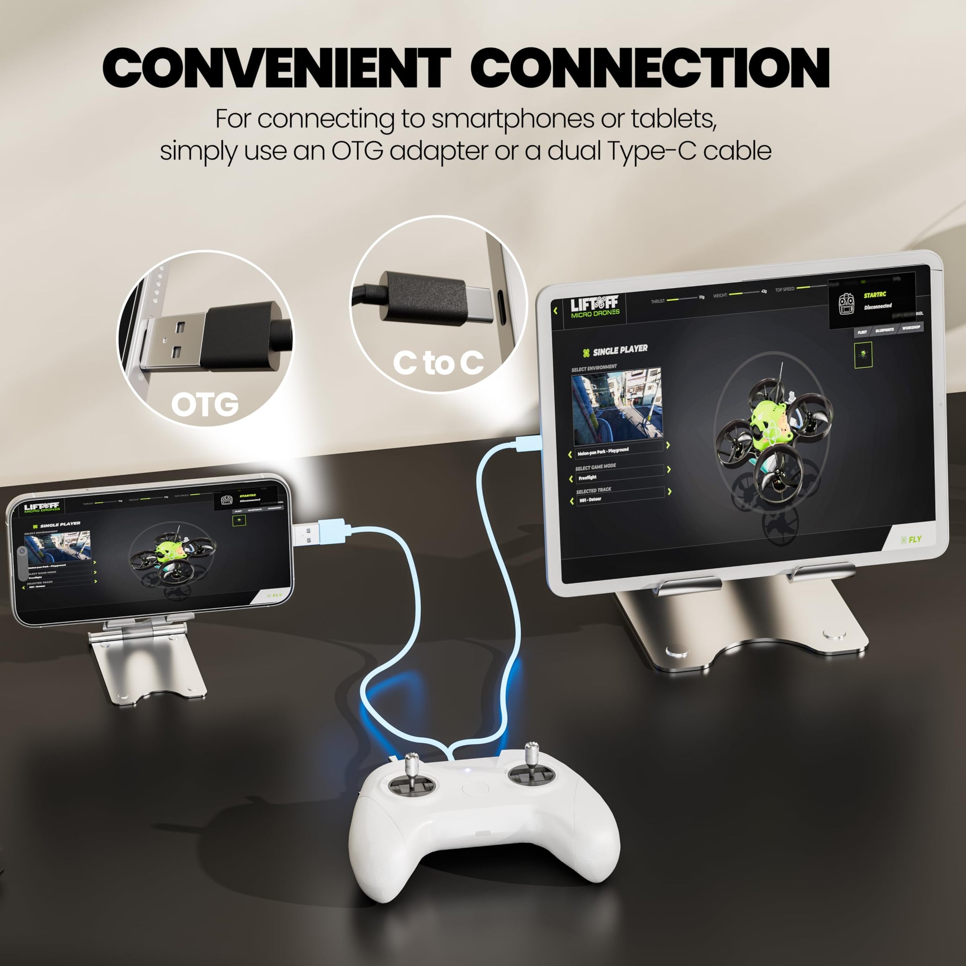 - 【All Your Favorite FPV Simulators】STARDRONE S8 supports popular 《Uncrashed : FPV Drone Simulator》,《TRYP FPV: Drone Racer Simulator》,《FPV LOGIC》,《TRYP FPV: Drone Racer Simulator》,《FPV SkyDive : FPV Drone Simulator 》 ,《Liftoff: Micro Drones 》,《DCL - The Game 》,《The Drone Racing League Simulator》,《AI Drone Simulator》,《The Drone Racing League Simulator》,《FPV Battleground》,《FPVSIM Drone Simulator 》,《EreaDrone : FPV Drone Simulator》,《Drone Flight Simulator Online》,《I'm drone》.This Remote Controller is compatible with desktops, Android devices, and tablets.