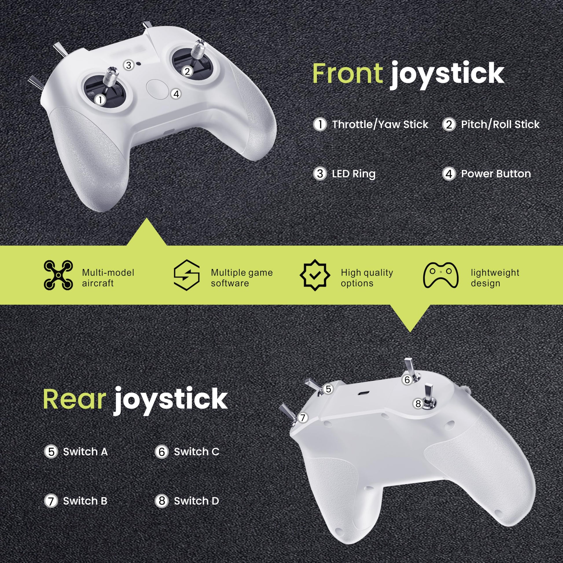 - 【What You Will Get】Package includes :1 x S8 Remote Controller(Mode 2), 1 x USB Type-C Cable,1 x Manual(The operation manual contains instructions for connecting and using multiple mainstream software).