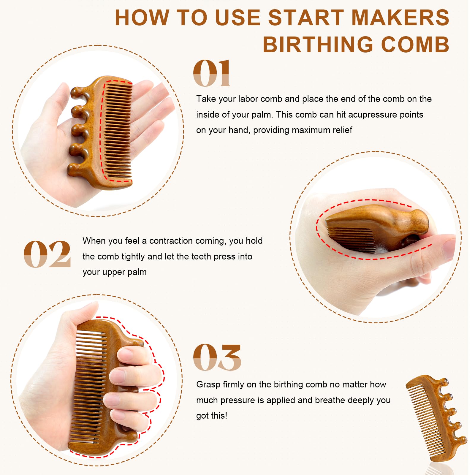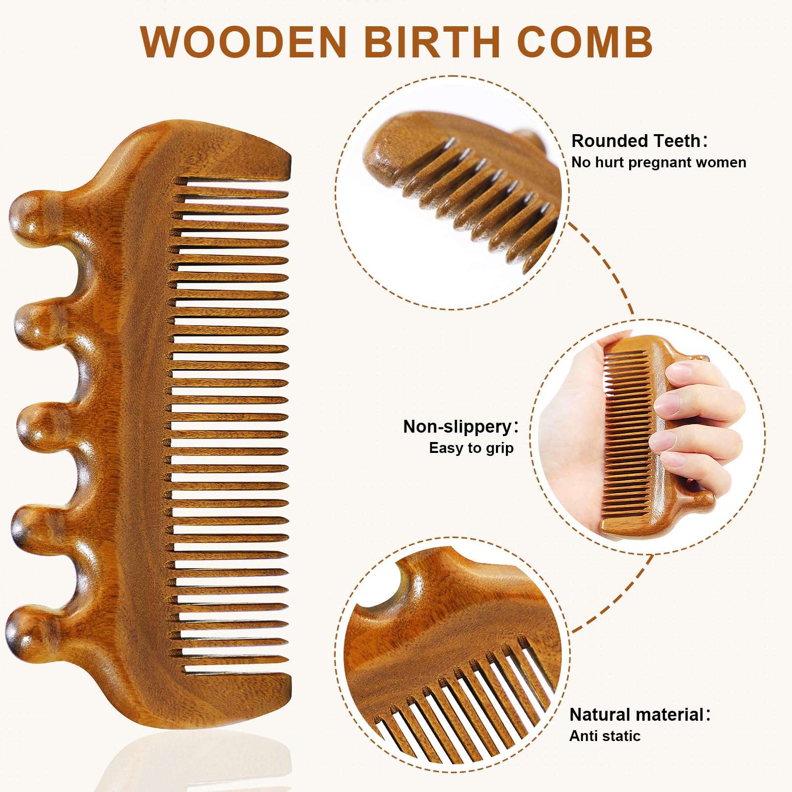 - 【Natural Birthing Comb】: Crafted from high-quality, natural wood, this labor comb is both sturdy and safe, with rounded teeth designed for gentle use. It is a great postpartum essential for women
