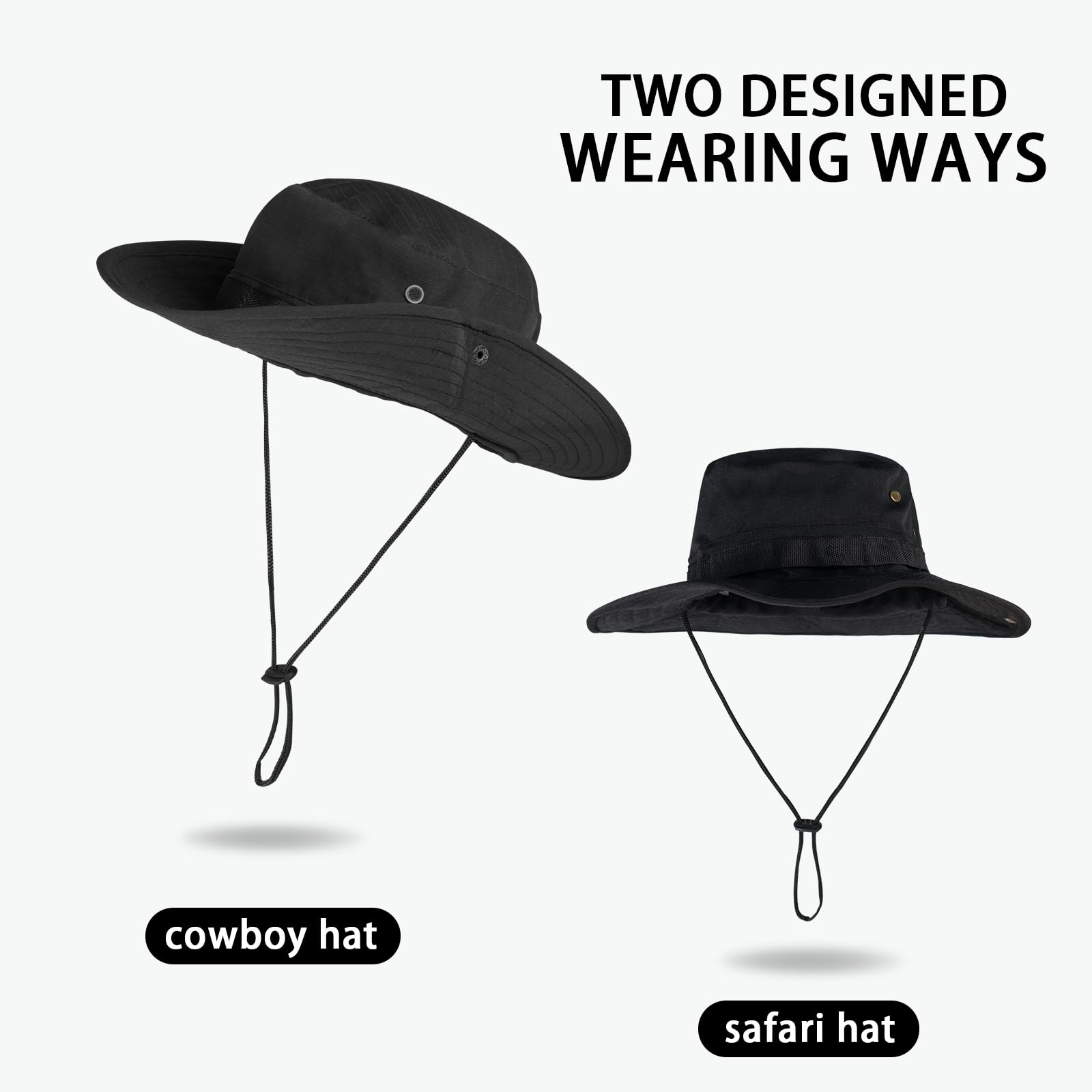 - TWO DESIGNED WEARING WAYS - Our unisex bucket hat has two ways to use it. Both sides are designed with rust-proof Pop-In buttons for easy conversion to Sheriff / Cowboy style. When the brim is buttoned up, it's a cowboy hat. Loosen it, which will be a fashionable sun-proof safari hat/fisherman hat for men and women.