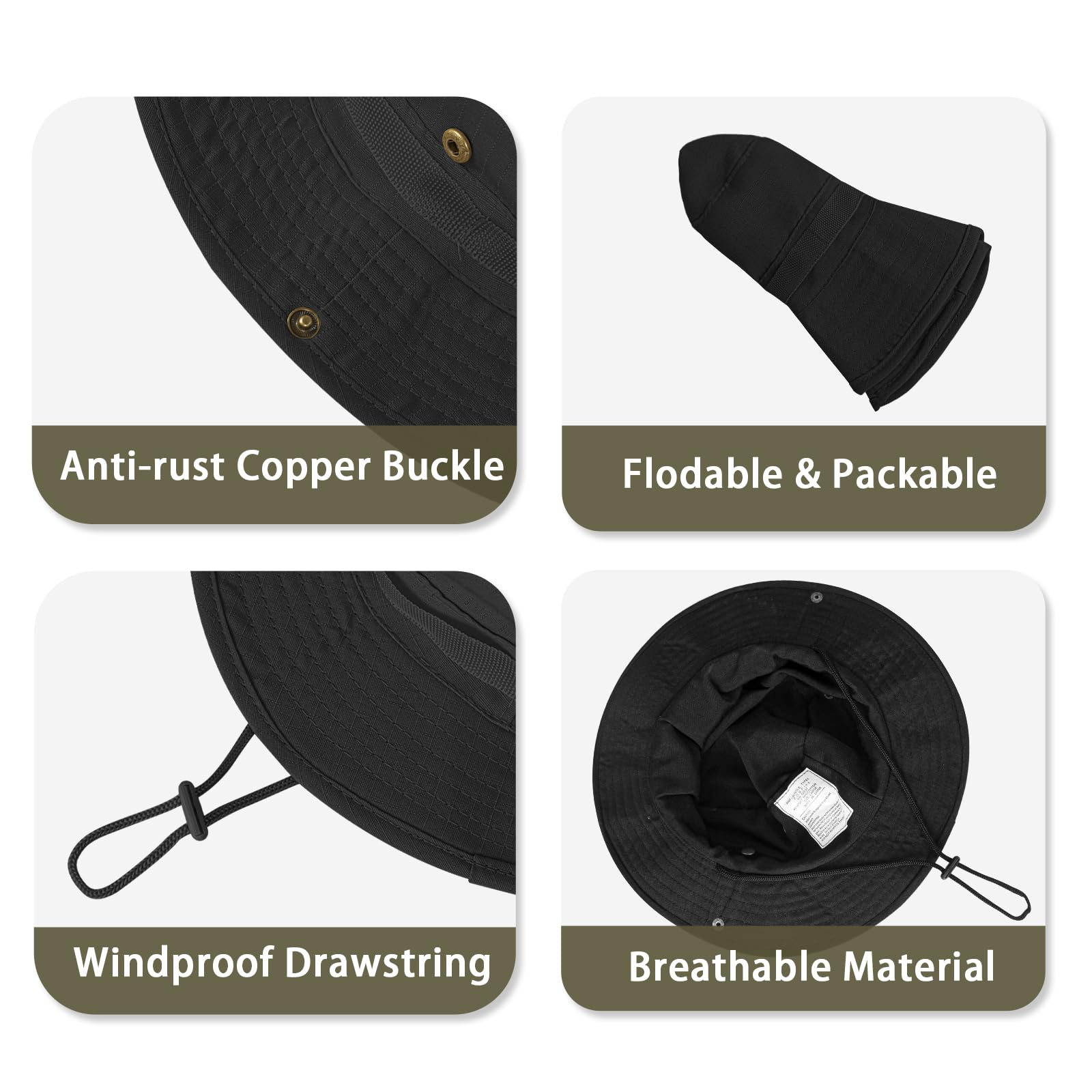 Sun Hats for Men Women Bucket Hat UPF 50+ UV Protection Boonie Hat for Safari Fishing Hiking Garden Beach Black