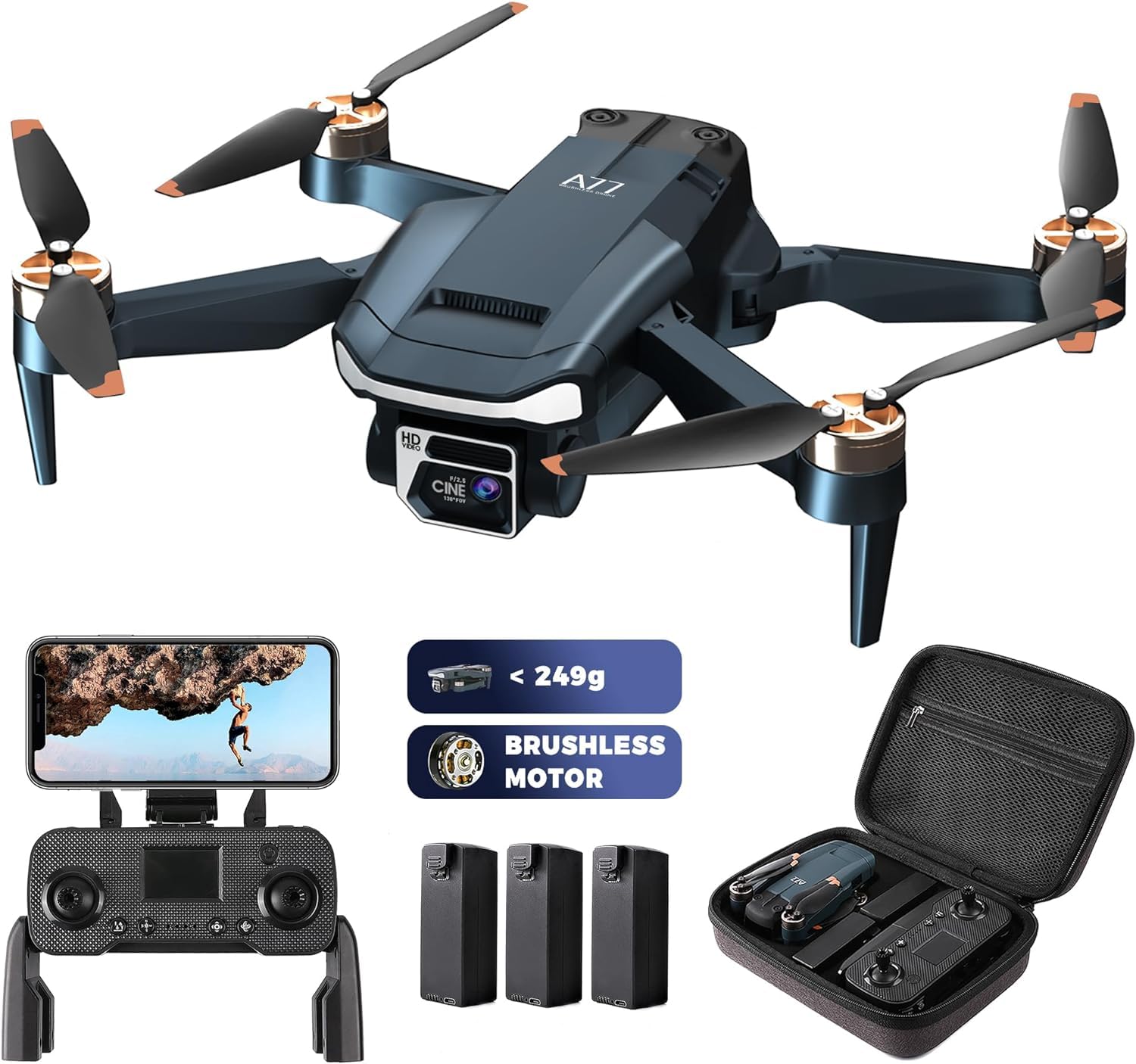 Super Enduring Brushless Motor Drone with 84 Mins Super Long Flight Time, Drone with 2K HD Camera for Beginners, CHUBORY A77 WiFi FPV Quadcopter, Follow Me, Auto Hover, 3 Batteries, Carrying Case