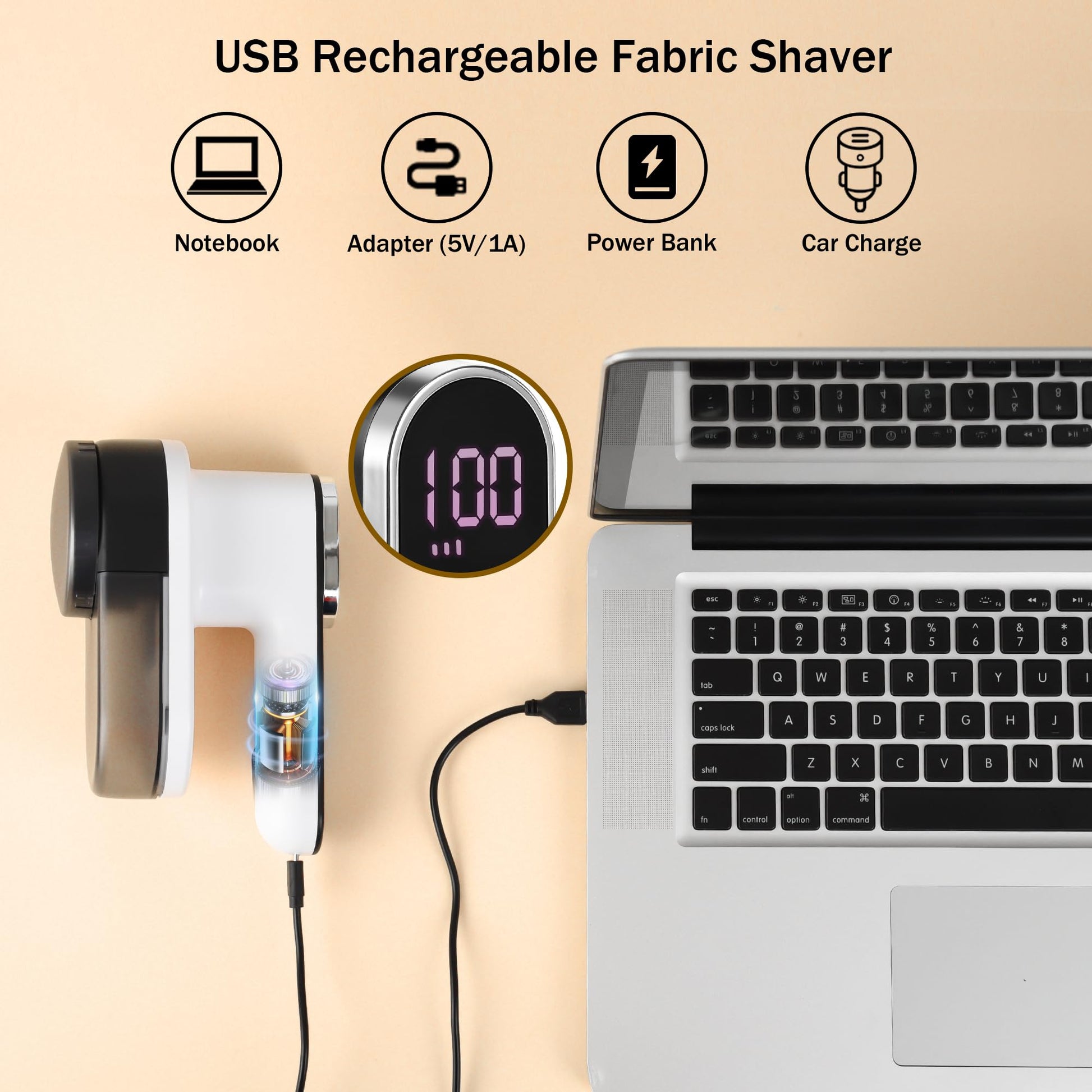 - [FAST CHARGING & EASY TO USE]: Clothes shaver built-in 2000mAh lithium battery, supports USB fast charge. Lint remover can be directly charged on notebook, desktop, power bank, mobile power supplies, which is very convenient.