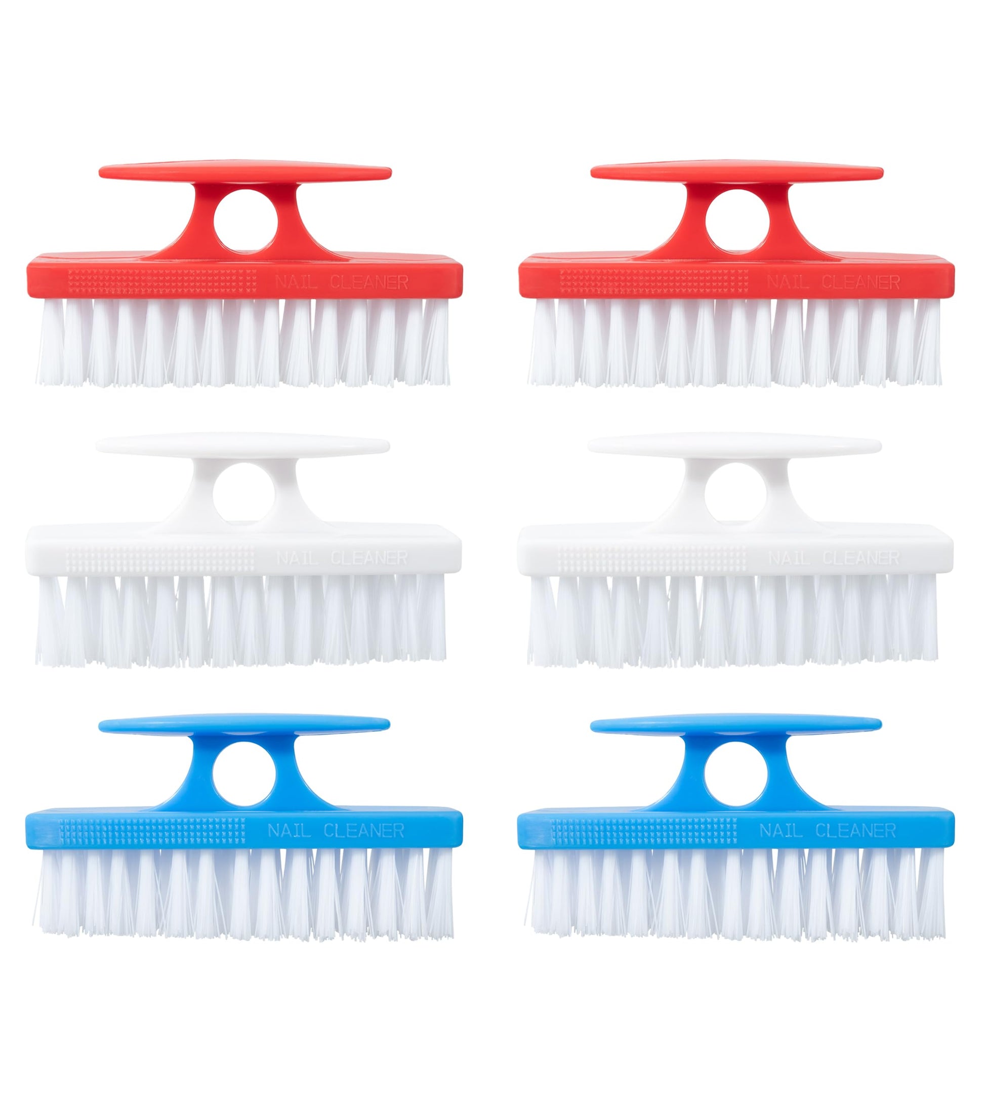 Superio Nail Brush Set (6 Pack) Cleaner with Handle, Durable Brush Scrubber to Clean Toes, Fingernails, Hand Scrubber All Surface Cleaning, Heavy Duty Scrub Brush Stiff Bristles (Red- White- Blue)