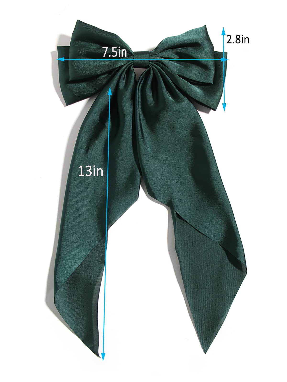 SUSULU Satin Bow Hair Clips for Women,Big Green Hair Bows Hair Slides Metal Clips Long Ribbon Hairpin Girls Barrettes Party Half-Updo Ponytail Accessories 2pcs