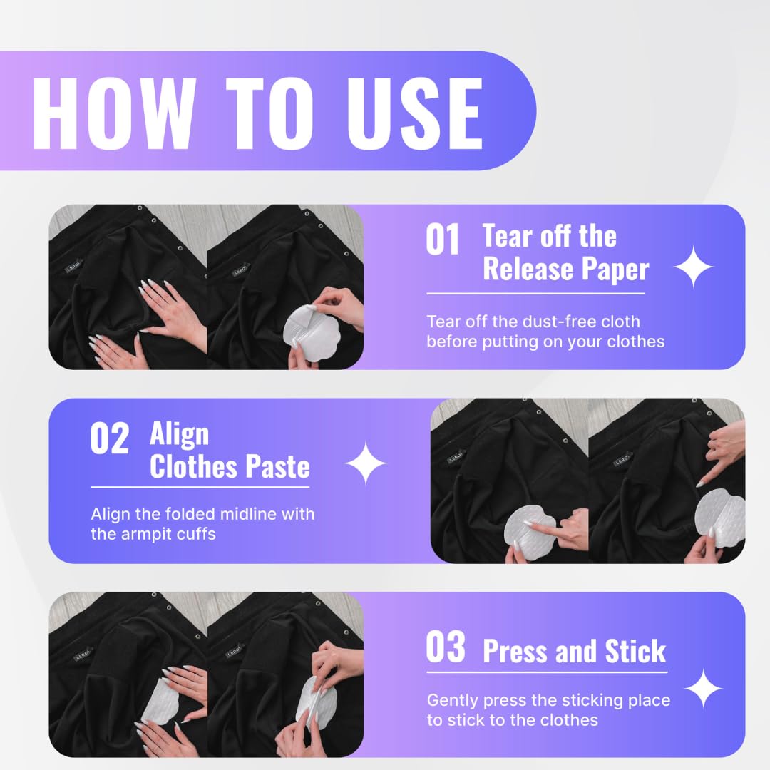 - Discreet and Effective Solution: Crafted to be invisible beneath clothing, our sweat pads for under arms let you conquer your day without the worry of detection; these underarm pads for sweating women blend seamlessly, providing you with a discreet shield against perspiration, whether you're heading to a meeting or on a night out. Add a layer of confidence under your clothes, knowing you'll stay dry and composed, ensuring peace of mind on any occasion.