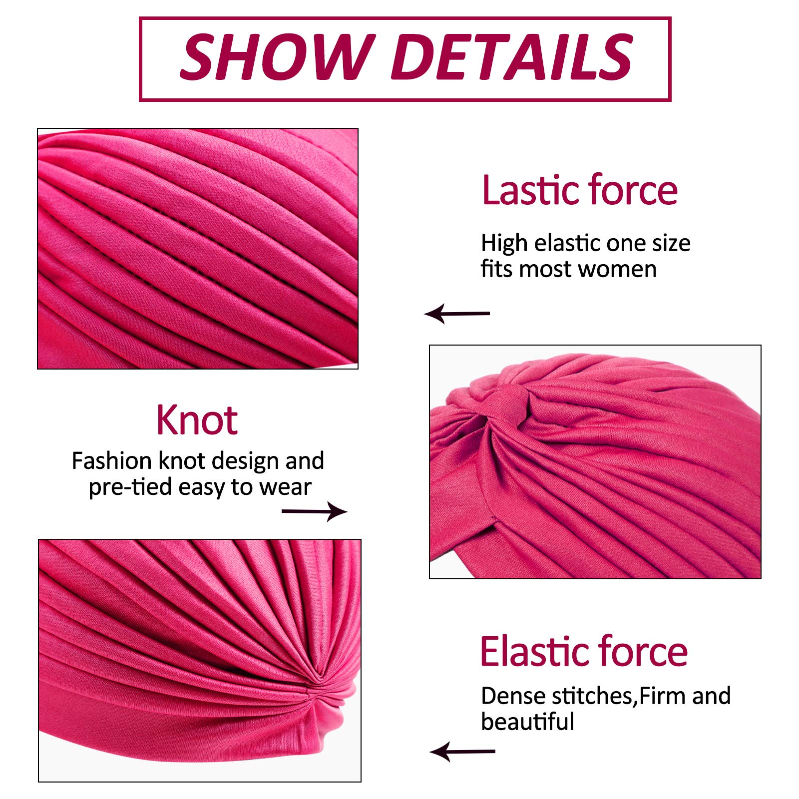 - Elastic to wear: the beanie stretchy turban cap features nice elasticity, which can be stretched to fit most woman's heads comfortably and tightly, not easy to slip off from your hair or make you feel uncomfortable, suitable for different seasons and occasions