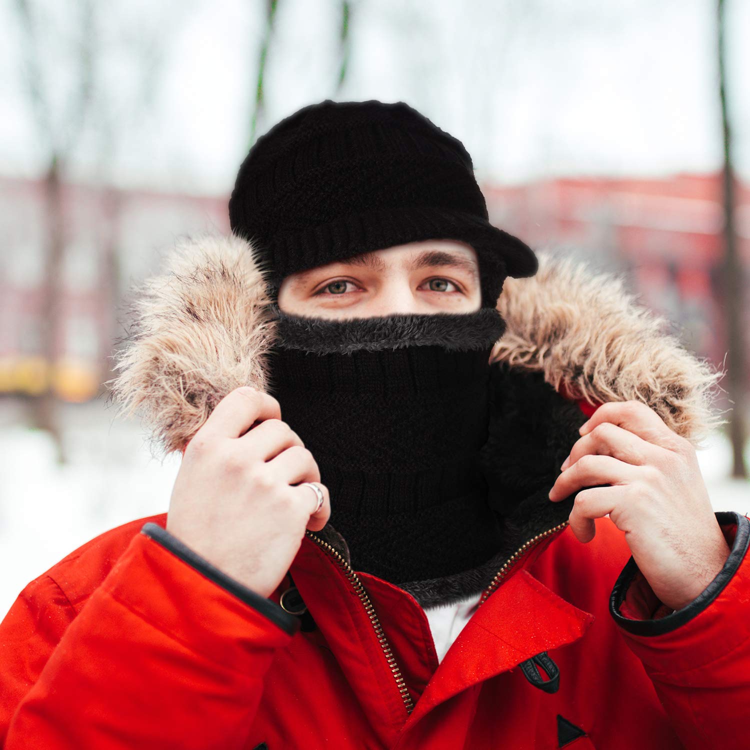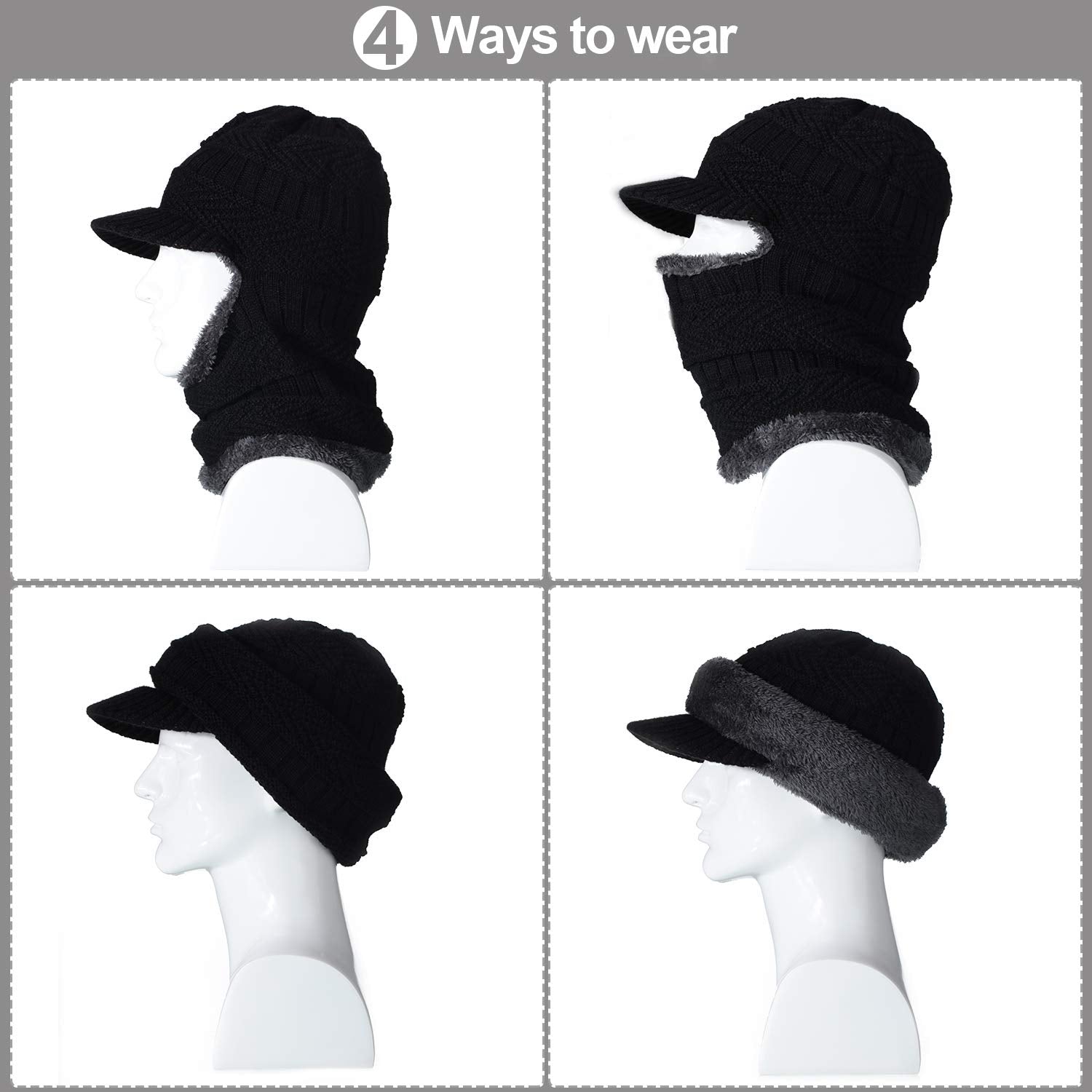 - Different ways to wear: the semi-closed knitted hats are designed with scarves and brims, you can just wear them as hats or pull them to cover your face, head and neck, different wearing ways for different occasions, they can keep you warm at the same time make you stylish