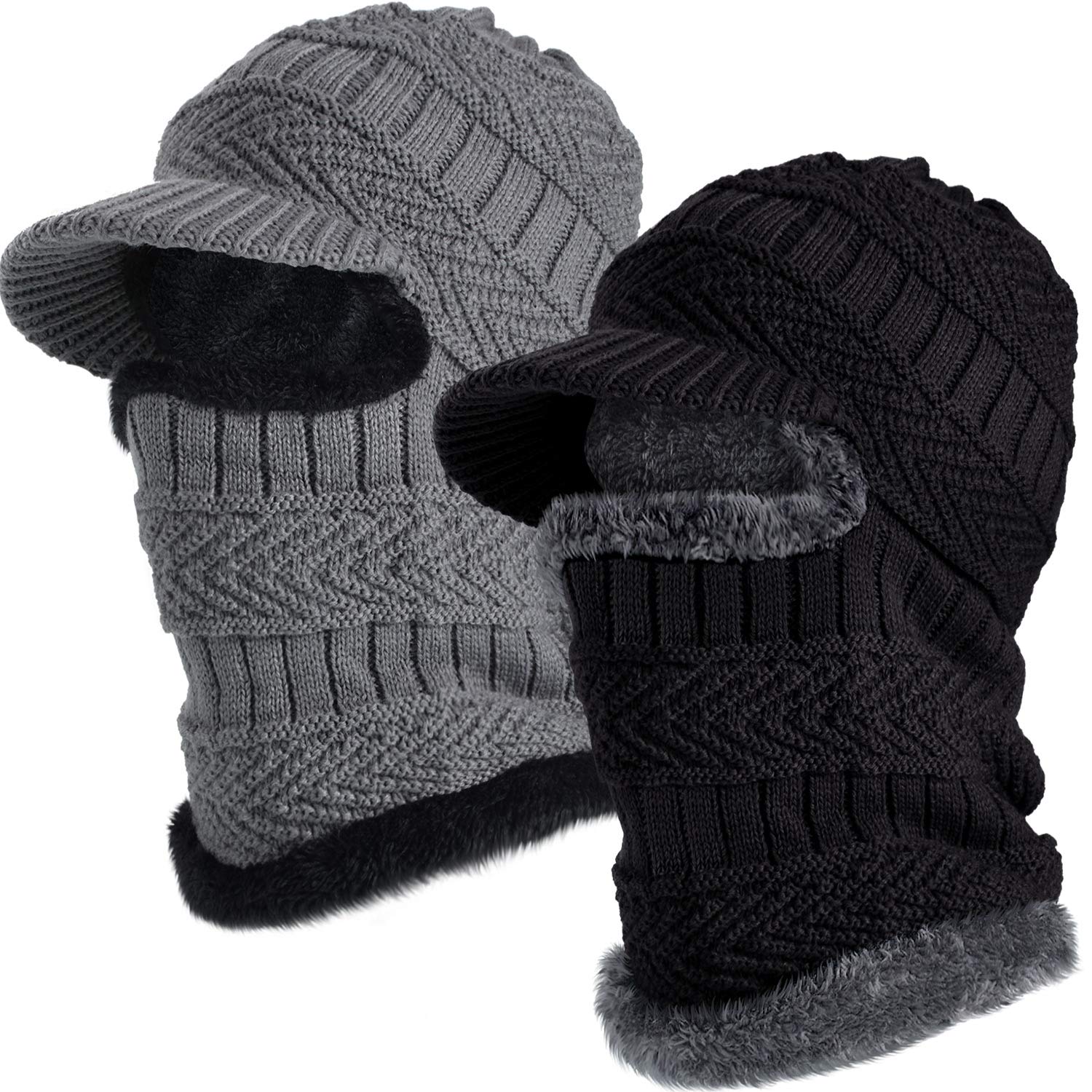 Syhood Knitted Balaclava Beanie Hat Winter Neck Warmer Ski Face Cover Neck Gaiter (Black, Grey,2 Pieces)