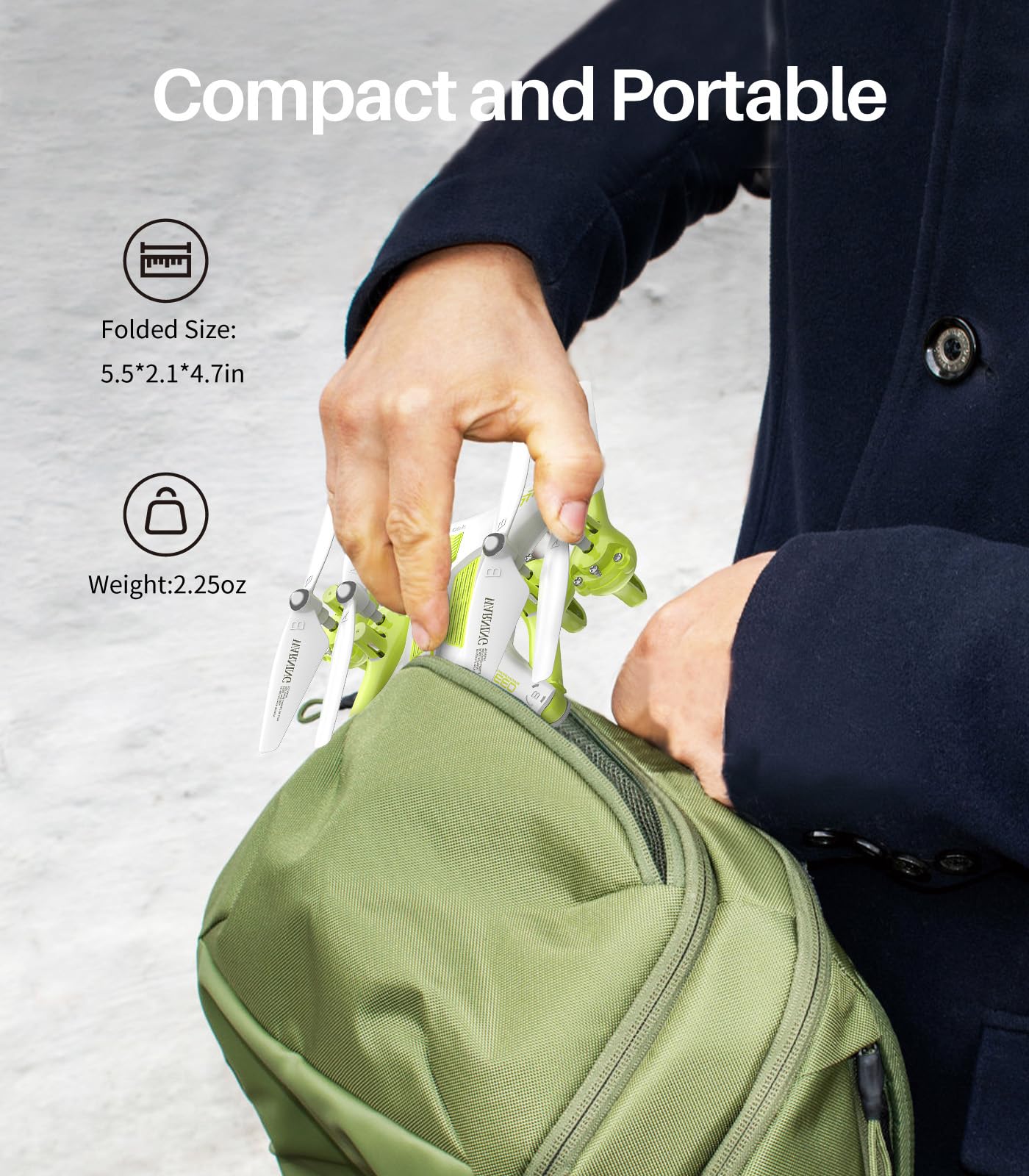 - Foldable and Safe Design: The drone has a folding design that easily carry. It includes safety features like Emergency Stop and Low Power Alarm, providing you with a carefree flight. The four propeller guards also protect the drone from crashes and pilots from getting hurt