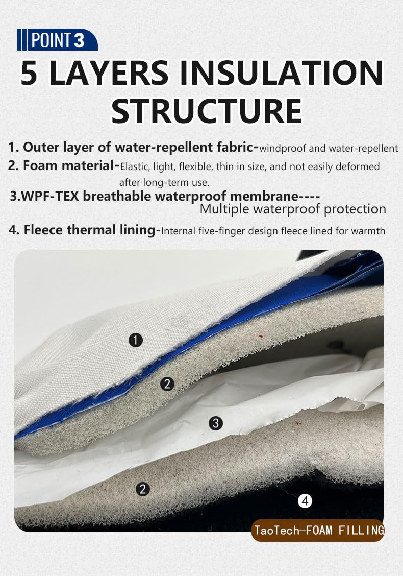 - The five-finger design with insulation inside protects your hands from the cold outside air.
