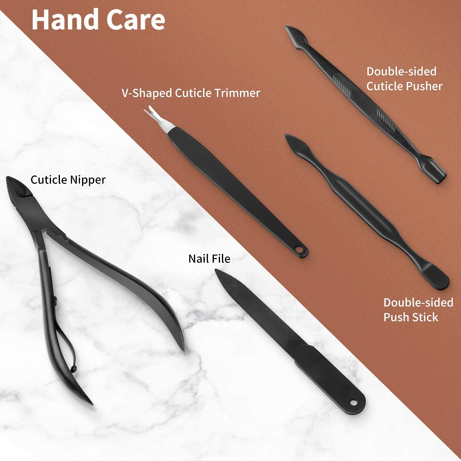 - [Superb Technology] -- The nail care kit is made of 304 stainless steel, it will not rust after long time use. And every stuff has non-slip design, every nail clippers is very sharp and durable.