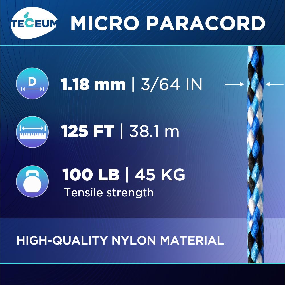 TECEUM Micro Paracord – Blue Snake – 1.18 mm x 125 ft – Micro Utility Cord – Thin Braided Paracord Rope Nylon Polyester – Wind Chime Replacement – Survival Strong String 6769с