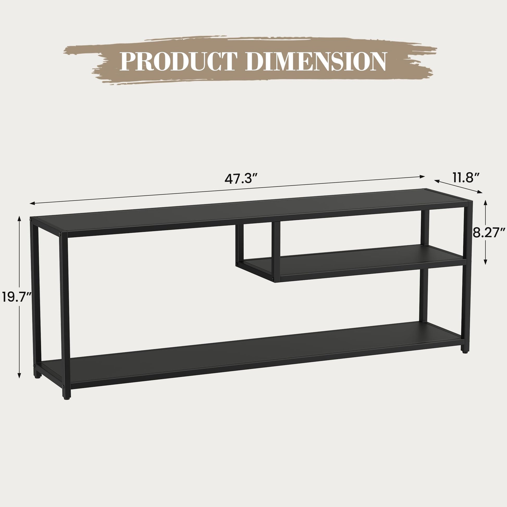 - 【Dimensions】 Our TV console table comes in two sizes, 47.3' x 11.8' x 19.7' and 55.1' x 11.8' x 19.7', which can accommodate most flat and curved TVs up to 65 inches. Choose the perfect size that suits your TV dimensions.