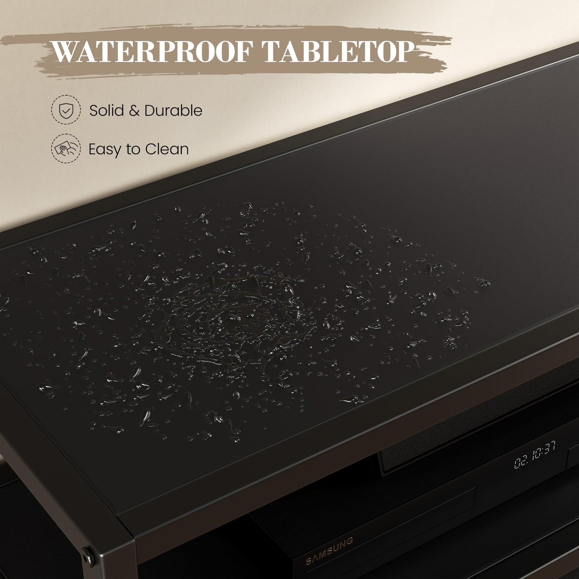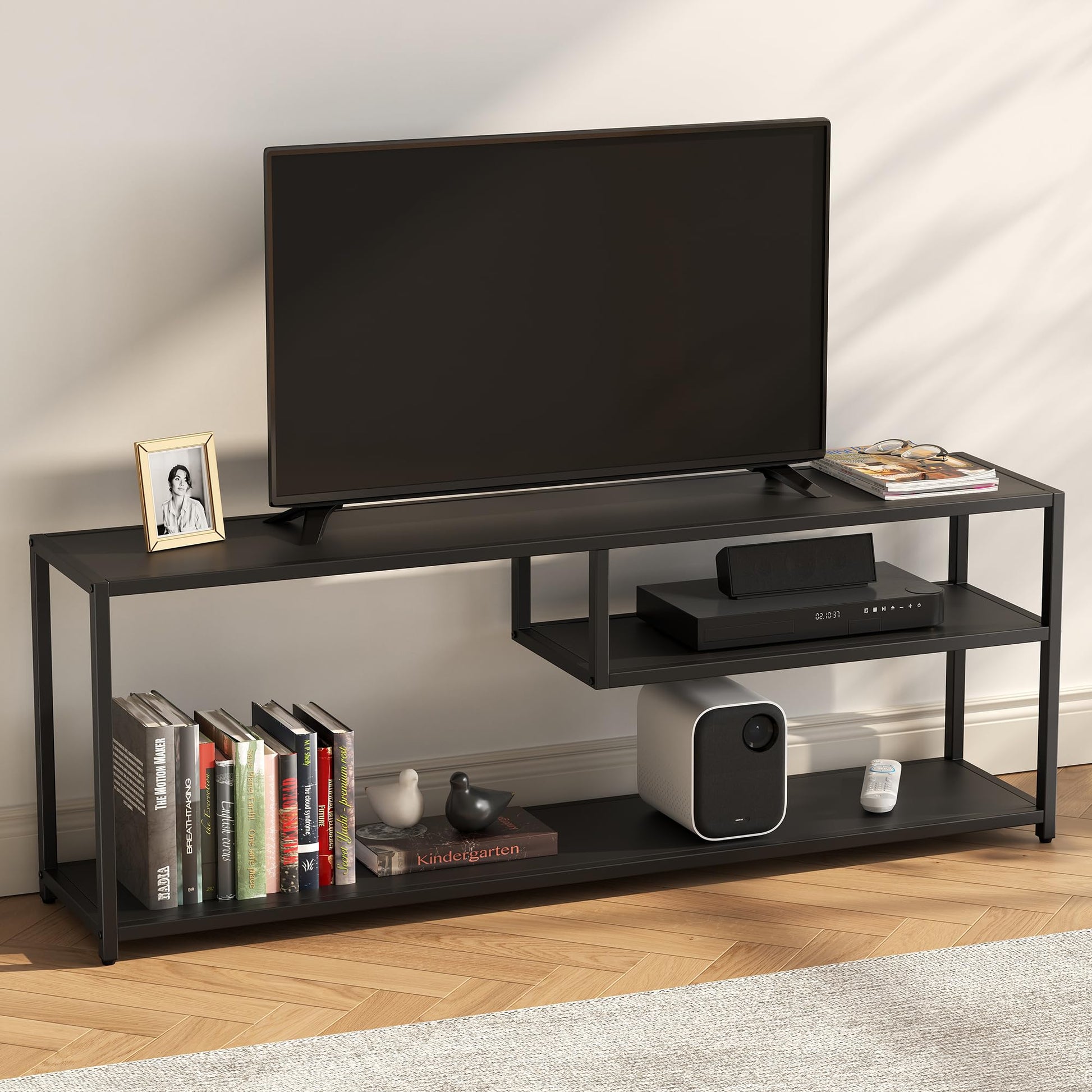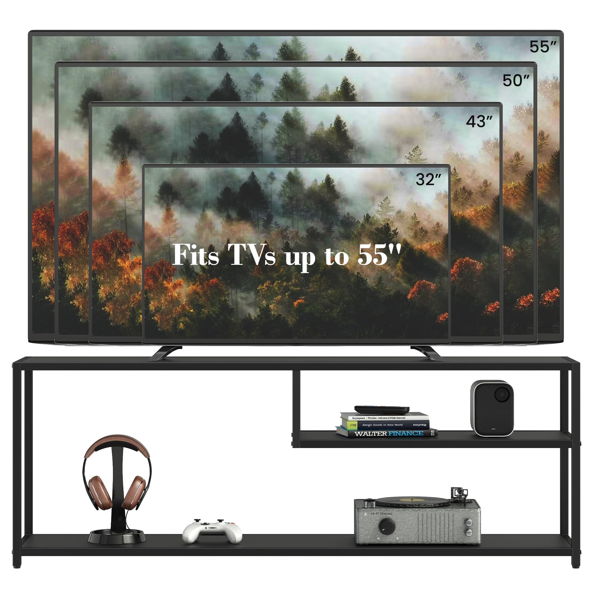 TECHMILLY Modern TV Stand for 55" TV, TV Table with Storage Shelves, Entertainment Center with Metal Frame, TV Console Table for Living Room, Bedroom, Black