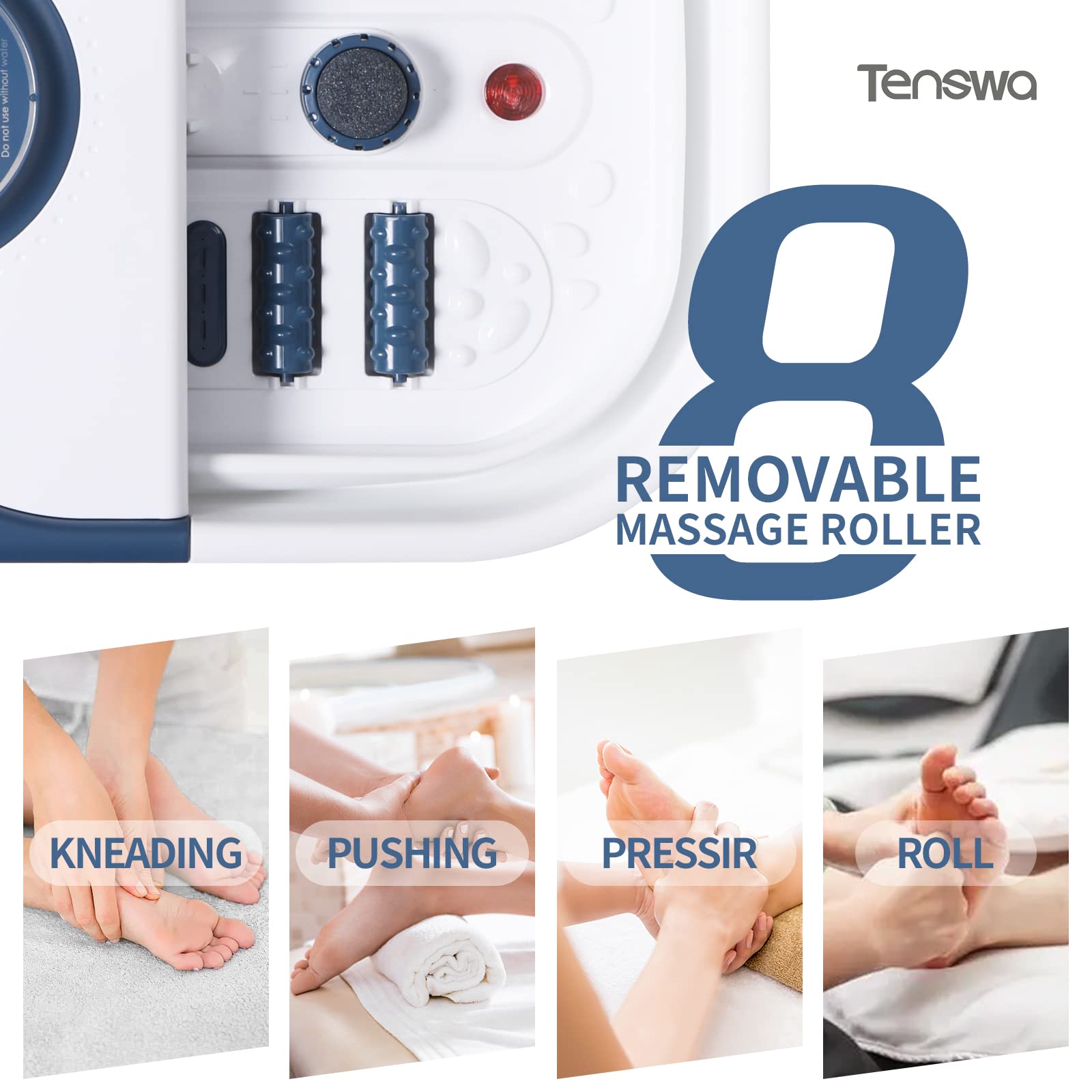 Tenswa Collapsible Foot Spa Bath Massager with Heat, Bubbles, Pedicure Foot Spa with 8 Rollers, Tub for Stress Relief, Soaker with Mini Acupressure Massage Points & Temperature Control