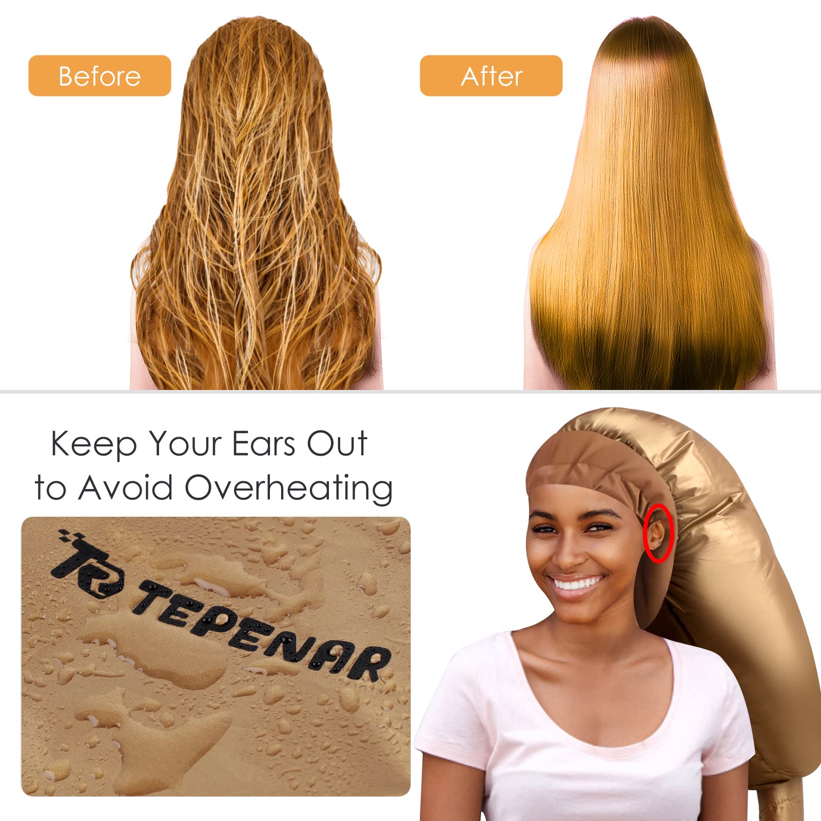 TEPENAR Bonnet Hair Dryer Attachment: Upgraded Extra Large Adjustable Hair Dryer Cap - Easy to Use for Natural Curly Textured Hair Care Styling Fast Drying - Gold